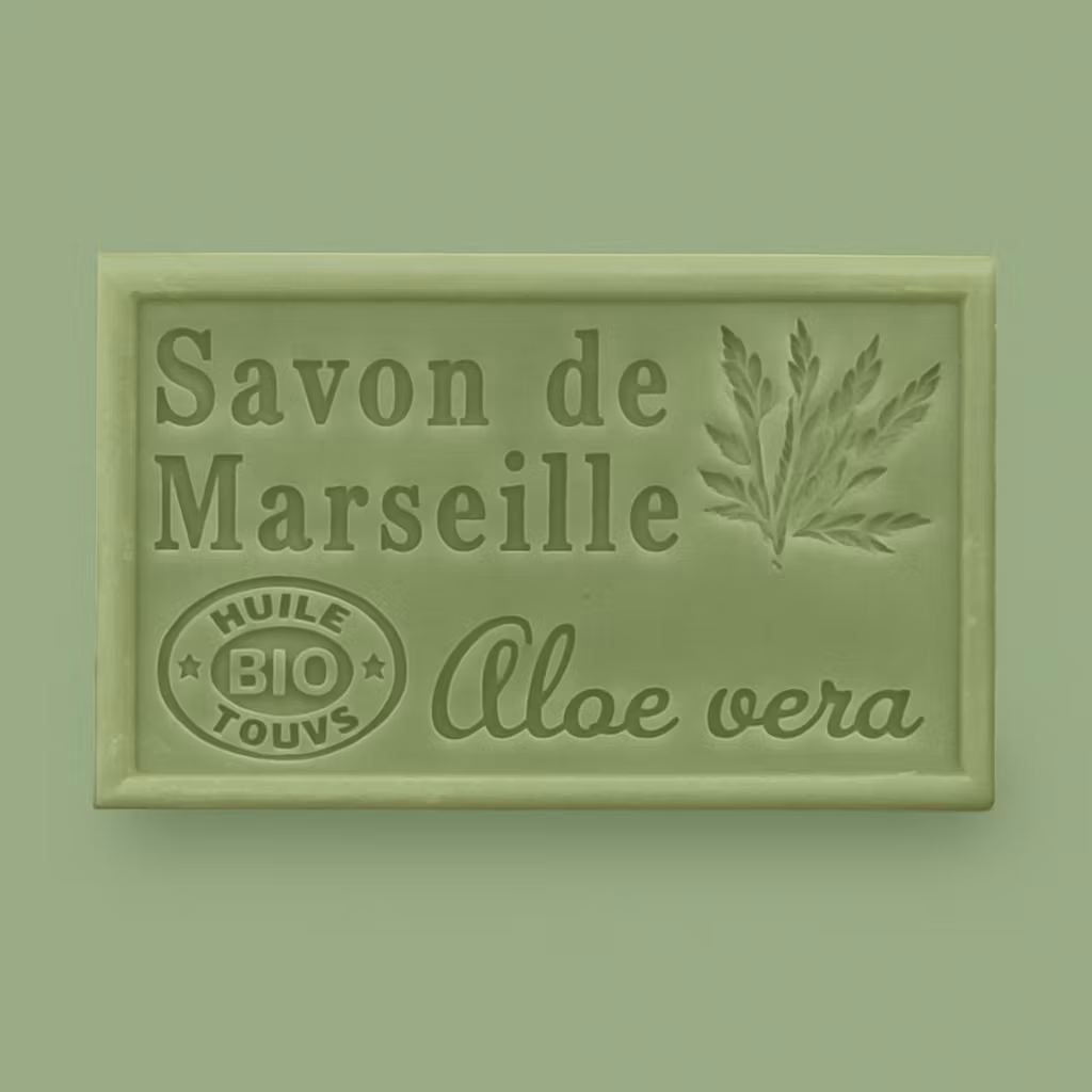 En klassisk fransk olivtvål med fräsch och hudvårdande doft av aloe vera – svalkande, ren och naturligt lugnande.