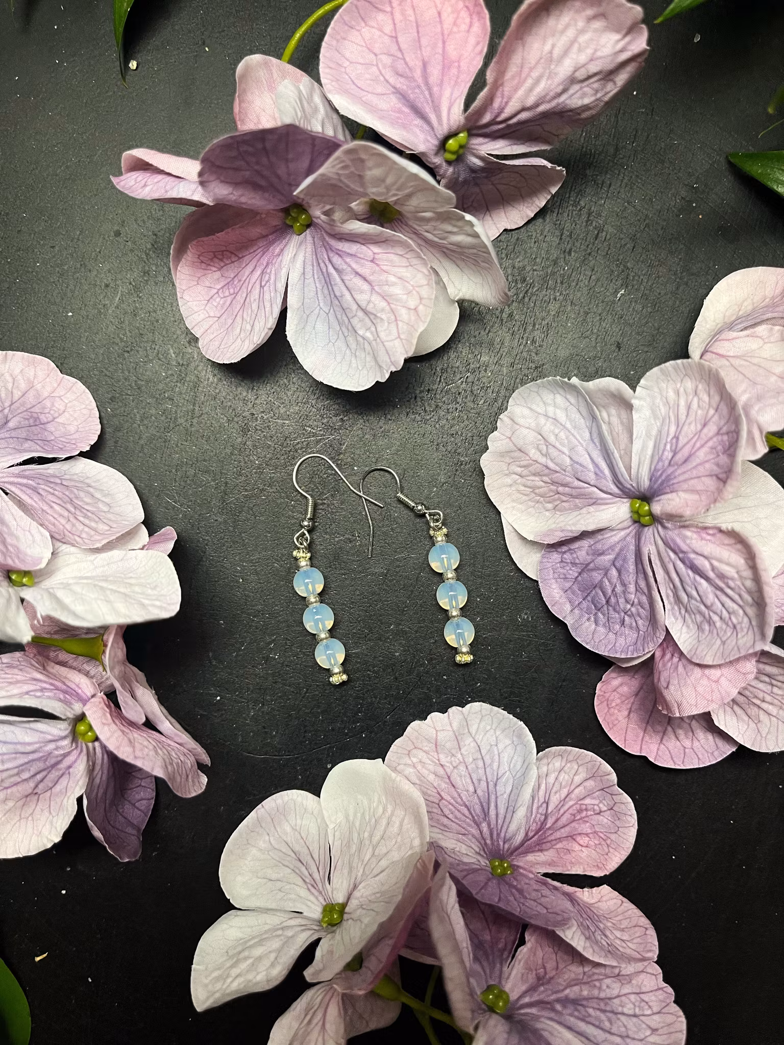 Örhängen med opalit . Nickelfria öronkrokar i silverpläterat stål.