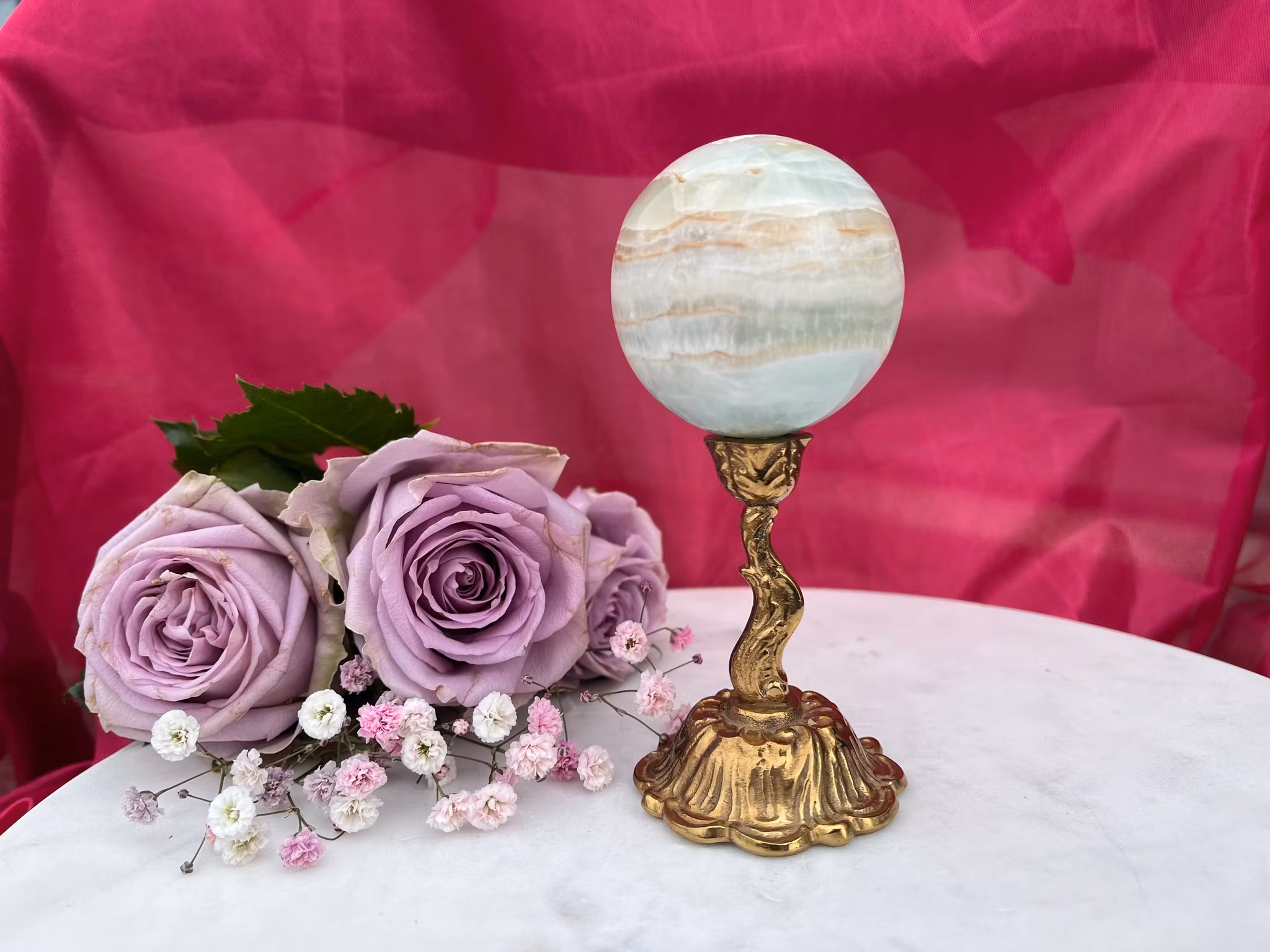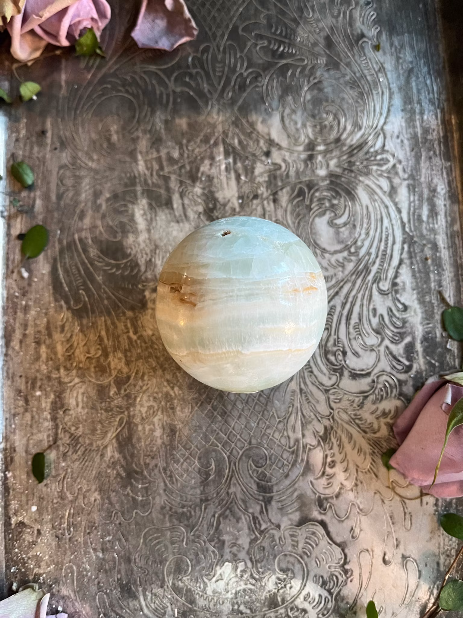 Karibisk blå Aragonit är en ganska ny sten som hittats i Pakistan, den är en blandning av olika Aragoniter. Den har en lugnande energi, som lättar sinnet och är mycket bra att använda vid tex. meditation. Hjälper dig att tänka i nya banor speciellt när du kört fast. Den tar bort negativa känslor och energier och omvandlar dem till positiv energi.