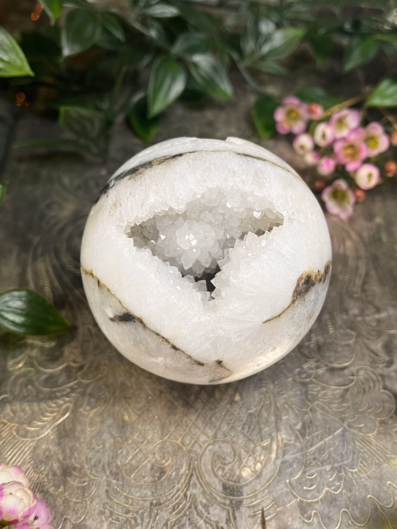 Super fina gnistrande klot i druzy agat med inslag av svart pyrit, jaspis & mossagat.
