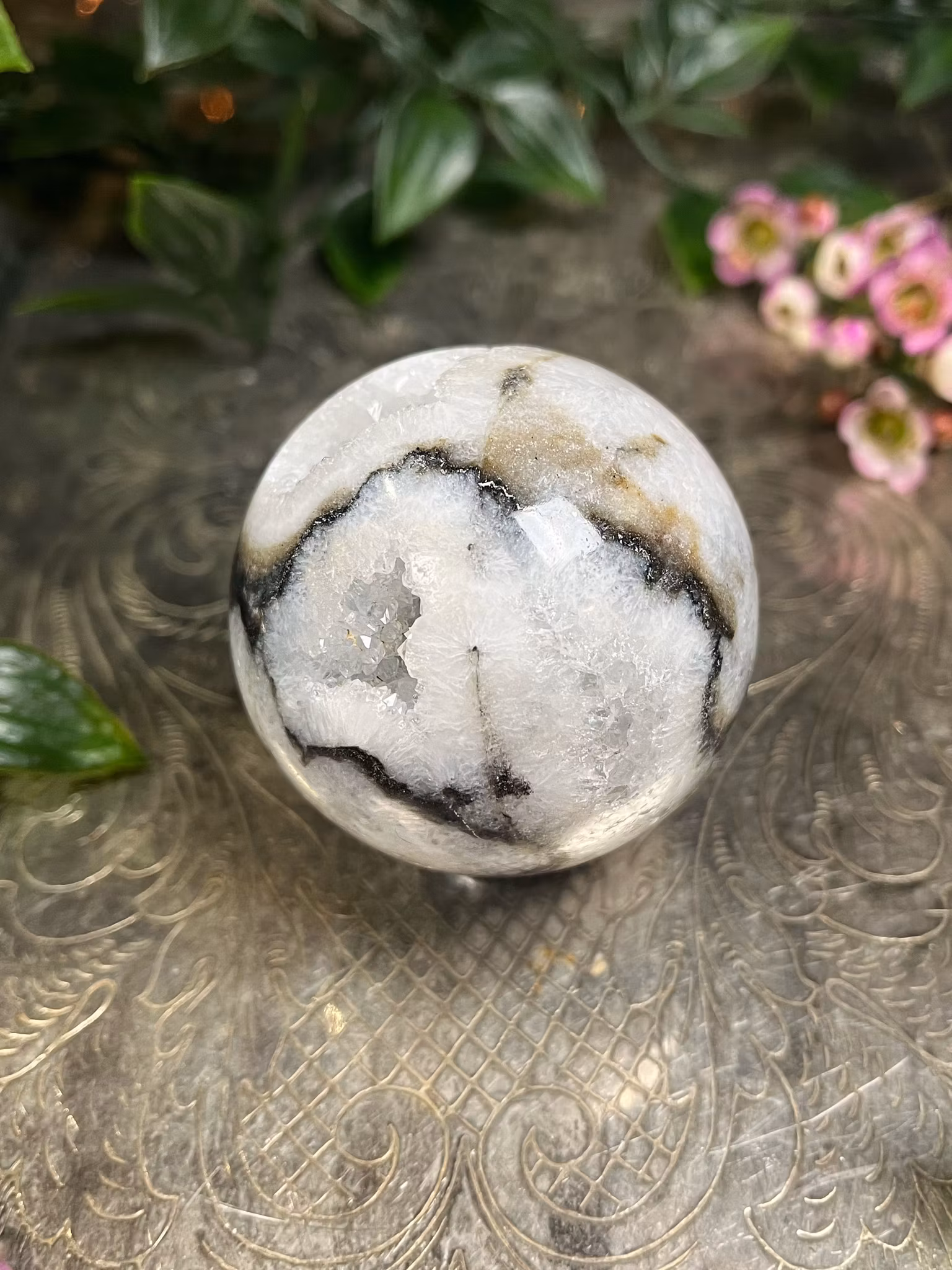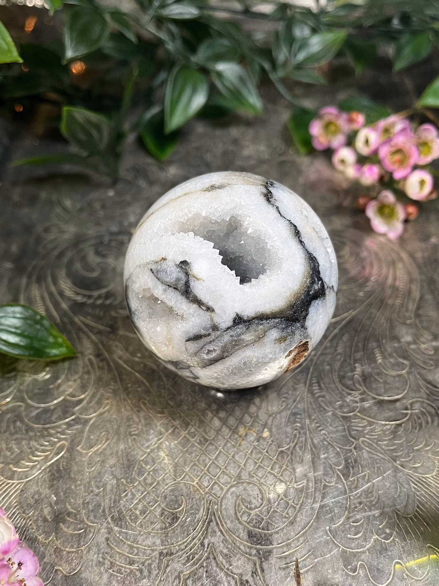 Super fina gnistrande klot i druzy agat med inslag av svart pyrit, jaspis & mossagat.
