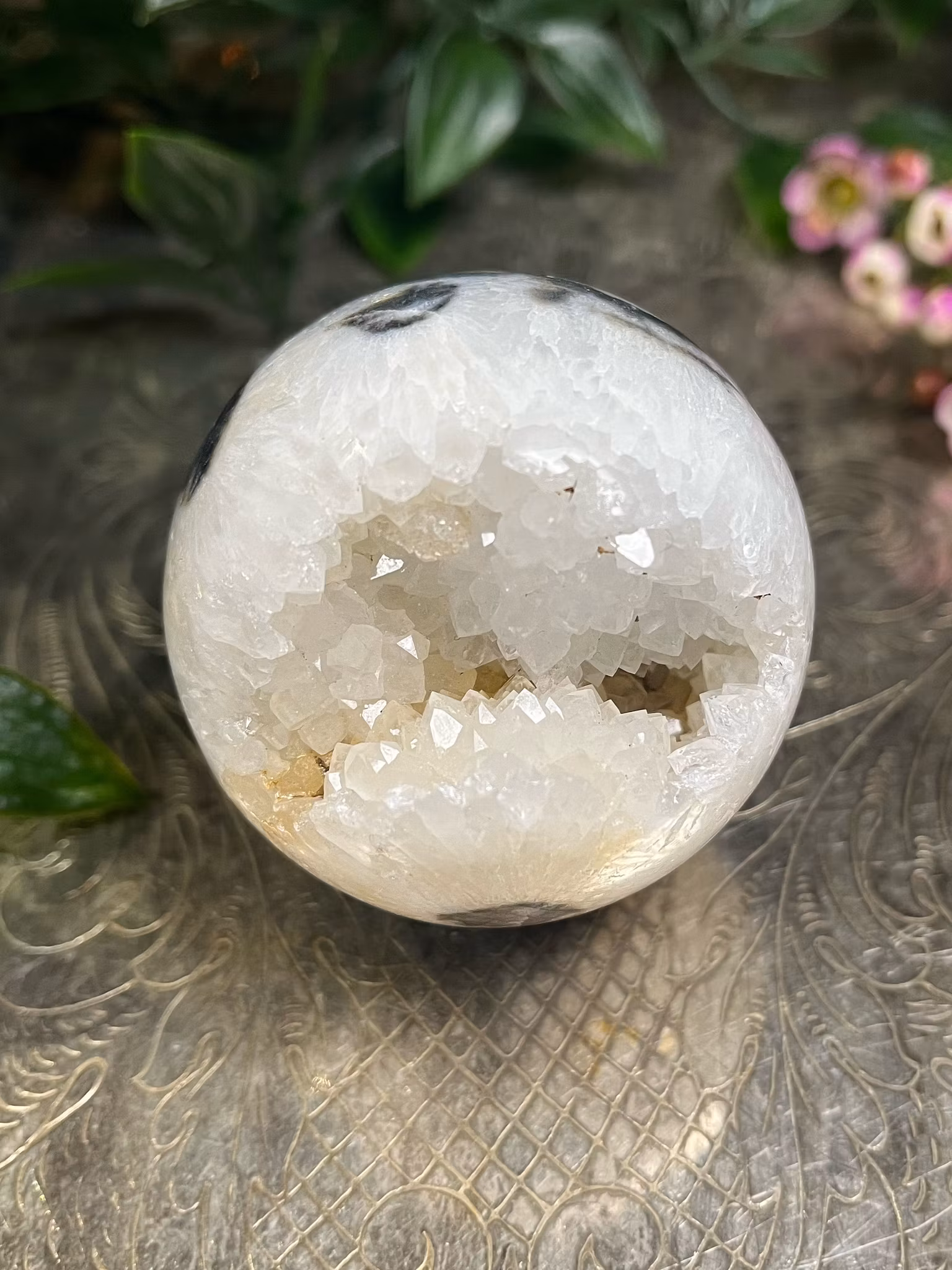 Super fina gnistrande klot i druzy agat med inslag av svart pyrit, jaspis & mossagat.