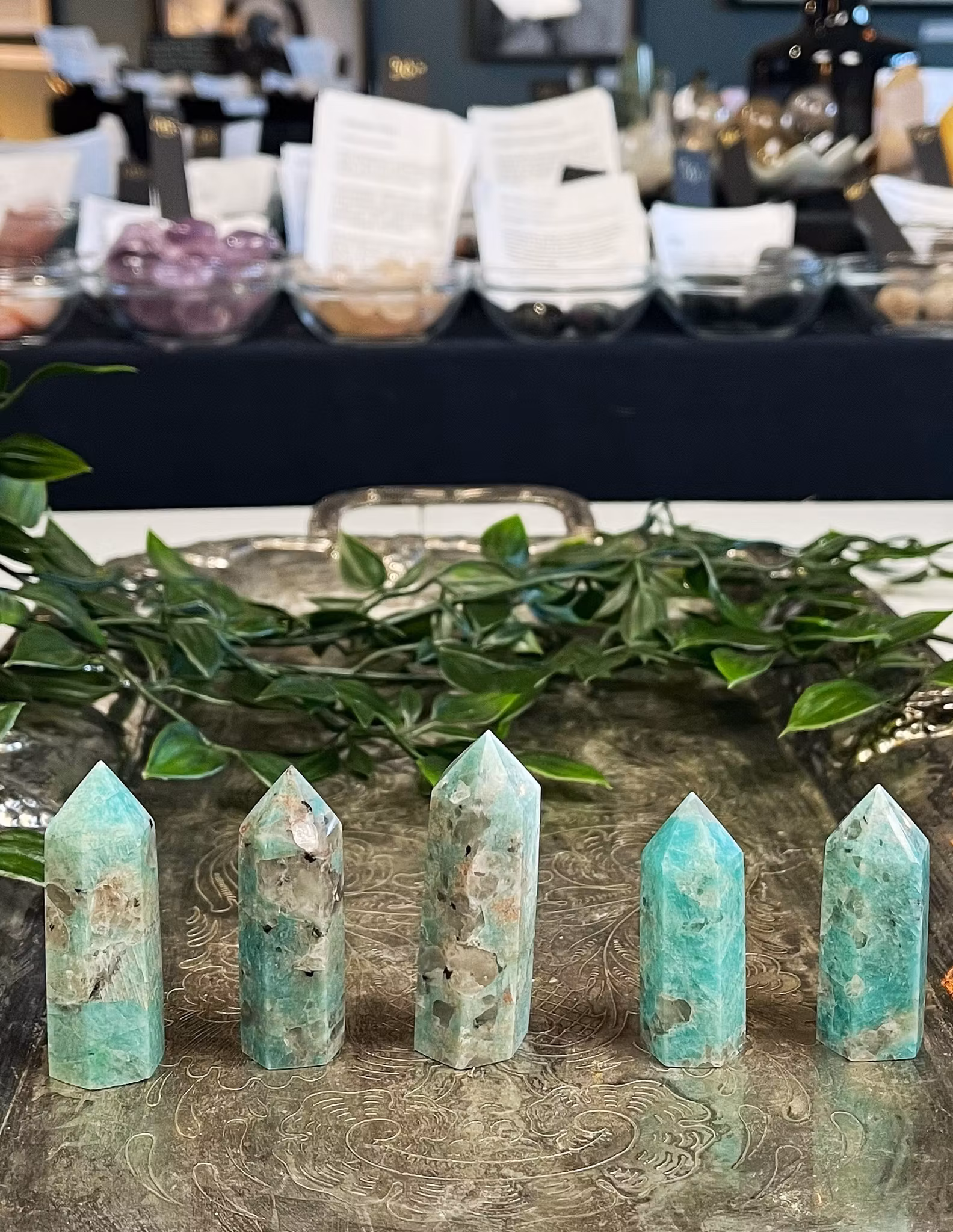 Amazonit är feminin sten som verkar på de kvinnliga energierna. Med Amazonit kan du följa flödet, den balanserar och lugnar. Speciellt hjärnan och nervsystemet.