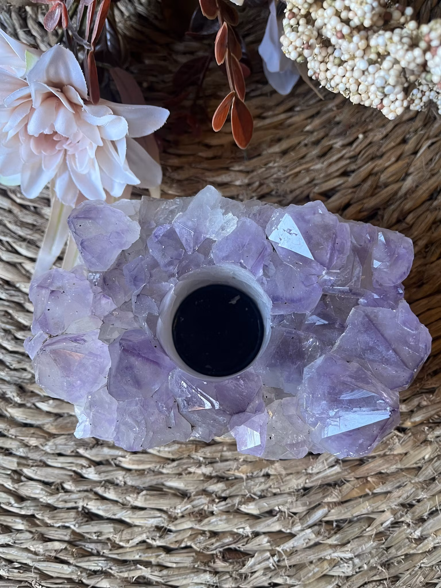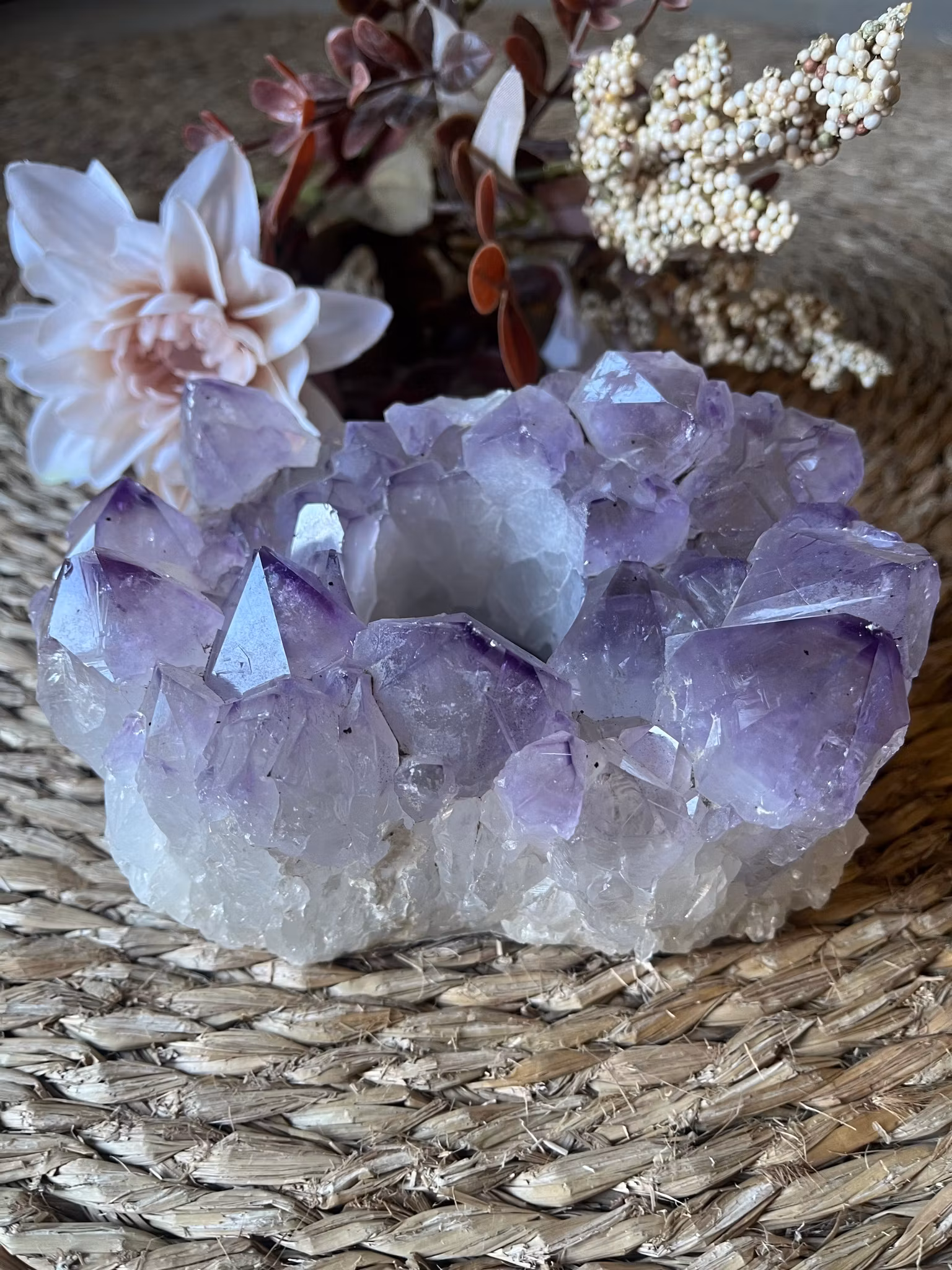 Ametist är en starkt andlig sten, den verkar på kronchakrat och öppnar upp sig mot universums energier. Den är även stark beskyddande, en naturlig stress bort tagare och stärker din inre styrka.