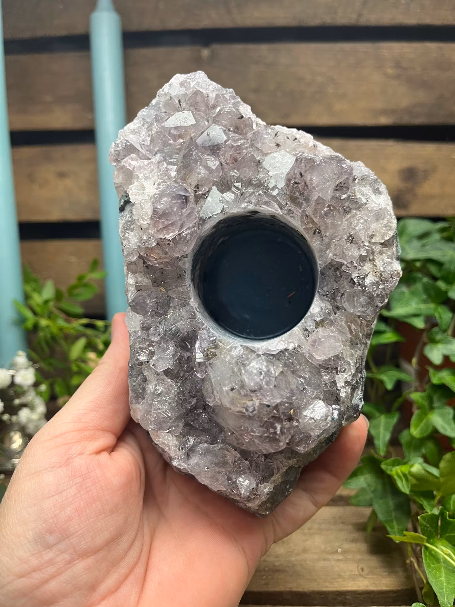 Ametist är en starkt andlig sten, den verkar på kronchakrat och öppnar upp sig mot universums energier. Den är även stark beskyddande, en naturlig stress bort tagare och stärker din inre styrka.