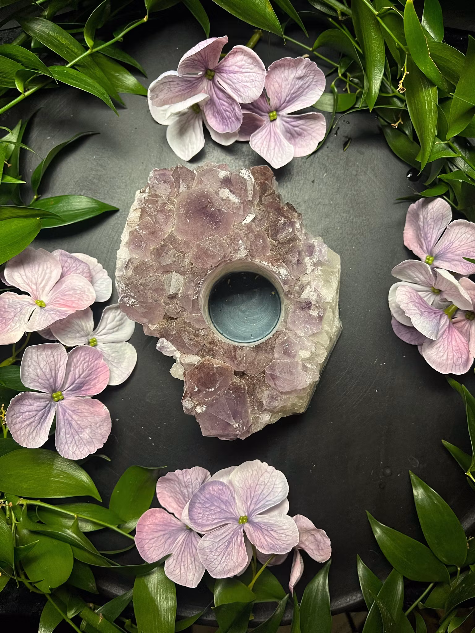 Ametist är en starkt andlig sten, den verkar på kronchakrat och öppnar upp sig mot universums energier. Den är även stark beskyddande, en naturlig stress bort tagare och stärker din inre styrka.