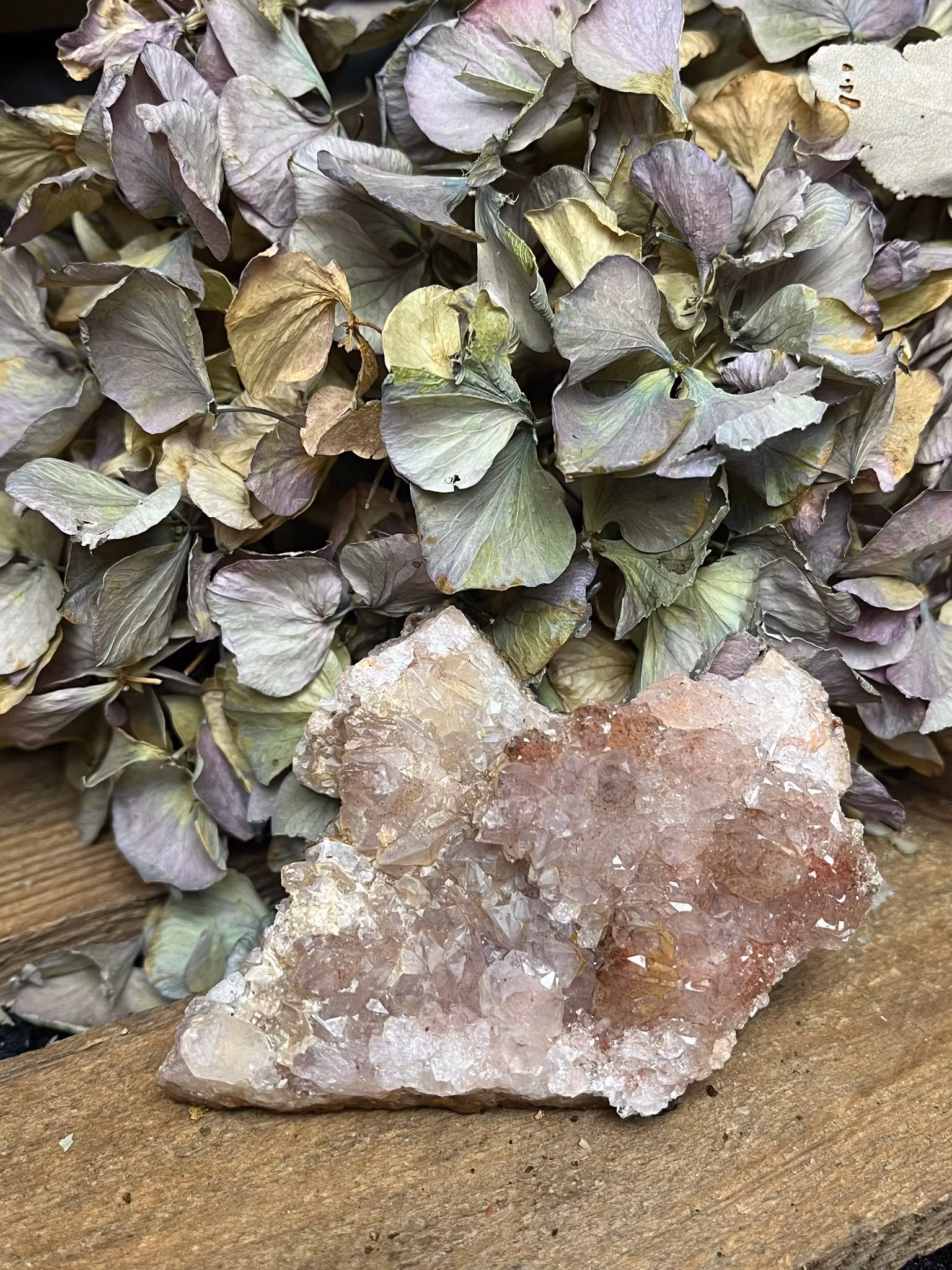 Ametist med Hematoid Kvarts är en kraftfull kombination av två kristaller som balanserar andlighet och fysisk energi. Ametisten, som är känd för sina lugnande och intellektuella egenskaper, hjälper till att främja inre lugn, mental klarhet och andlig insikt. Hematoid Kvarts, å andra sidan, är en mycket jordande och energibalanserande sten som hjälper till att rensa negativa energier och stabilisera kroppens energifält. Tillsammans skapar dessa kristaller en fantastisk balans mellan det andliga och det fysiska, vilket ger både inre frid och styrka. Denna kombination stärker intuitiva förmågor samtidigt som den håller en stabil och harmonisk energi.