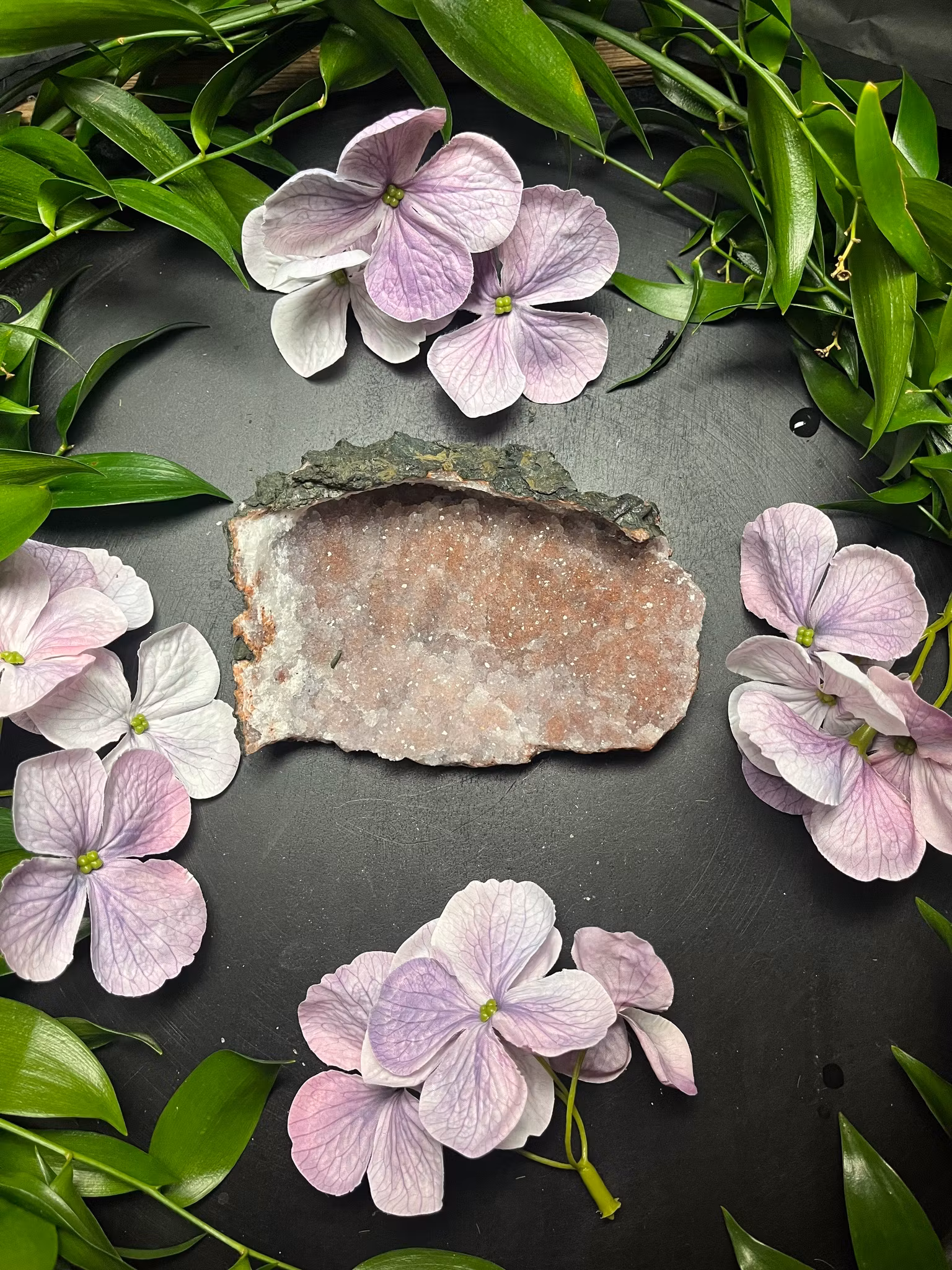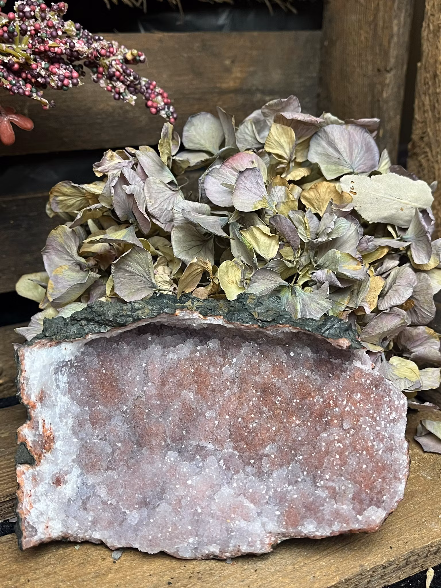 Ametist med Hematoid Kvarts är en kraftfull kombination av två kristaller som balanserar andlighet och fysisk energi. Ametisten, som är känd för sina lugnande och intellektuella egenskaper, hjälper till att främja inre lugn, mental klarhet och andlig insikt. Hematoid Kvarts, å andra sidan, är en mycket jordande och energibalanserande sten som hjälper till att rensa negativa energier och stabilisera kroppens energifält. Tillsammans skapar dessa kristaller en fantastisk balans mellan det andliga och det fysiska, vilket ger både inre frid och styrka. Denna kombination stärker intuitiva förmågor samtidigt som den håller en stabil och harmonisk energi.