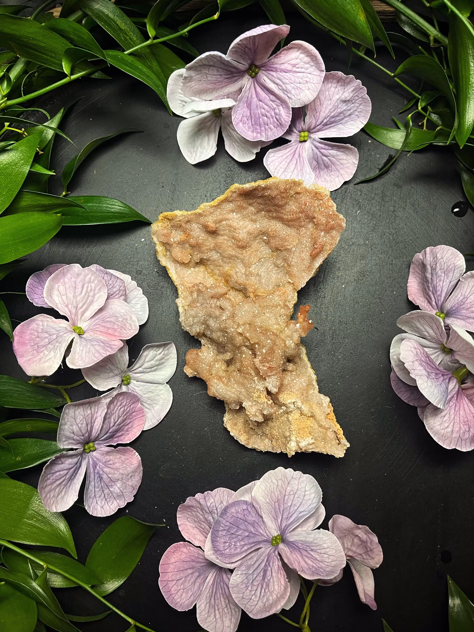 Ametist med Hematoid Kvarts är en kraftfull kombination av två kristaller som balanserar andlighet och fysisk energi. Ametisten, som är känd för sina lugnande och intellektuella egenskaper, hjälper till att främja inre lugn, mental klarhet och andlig insikt. Hematoid Kvarts, å andra sidan, är en mycket jordande och energibalanserande sten som hjälper till att rensa negativa energier och stabilisera kroppens energifält. Tillsammans skapar dessa kristaller en fantastisk balans mellan det andliga och det fysiska, vilket ger både inre frid och styrka. Denna kombination stärker intuitiva förmågor samtidigt som den håller en stabil och harmonisk energi.