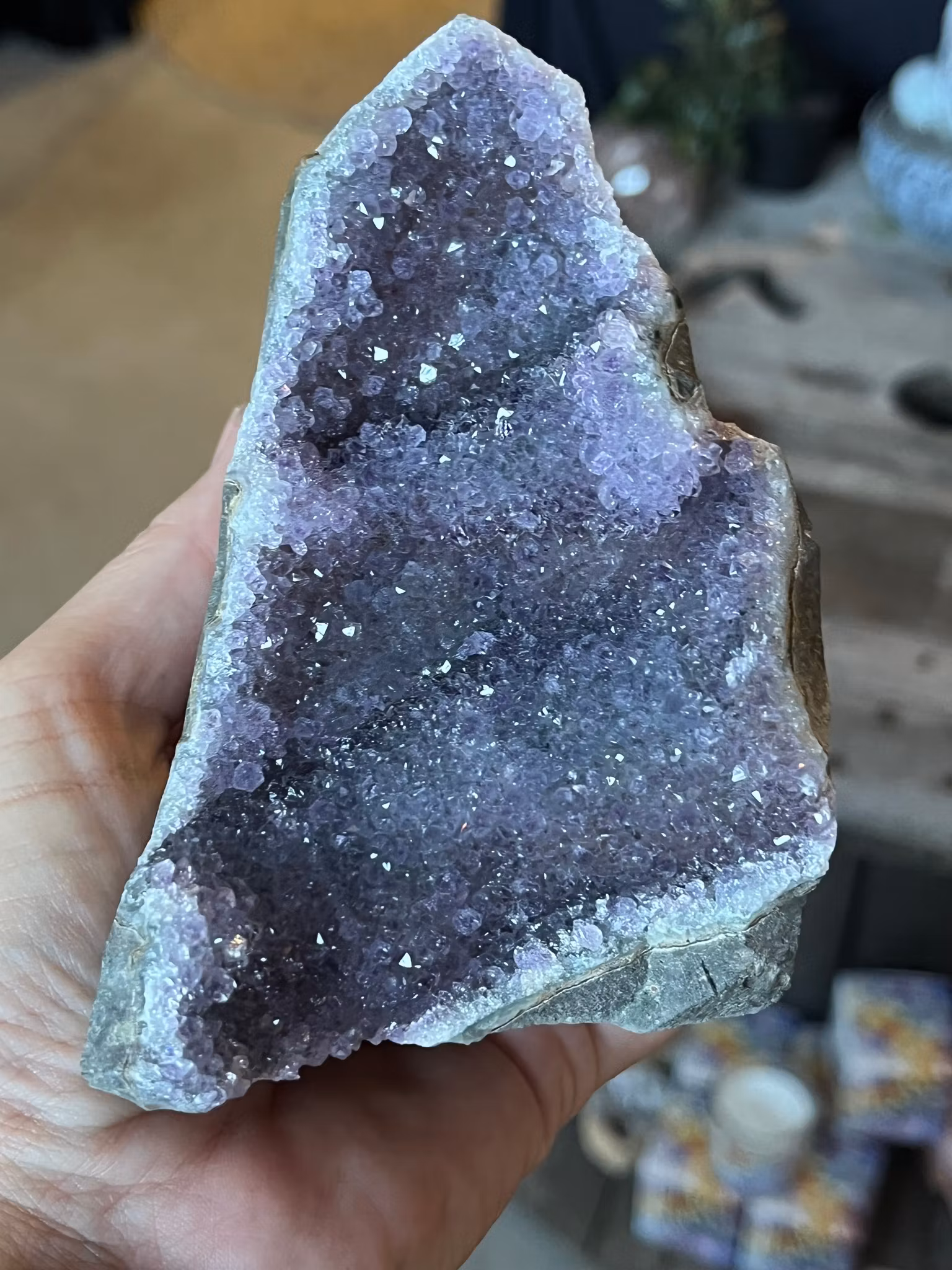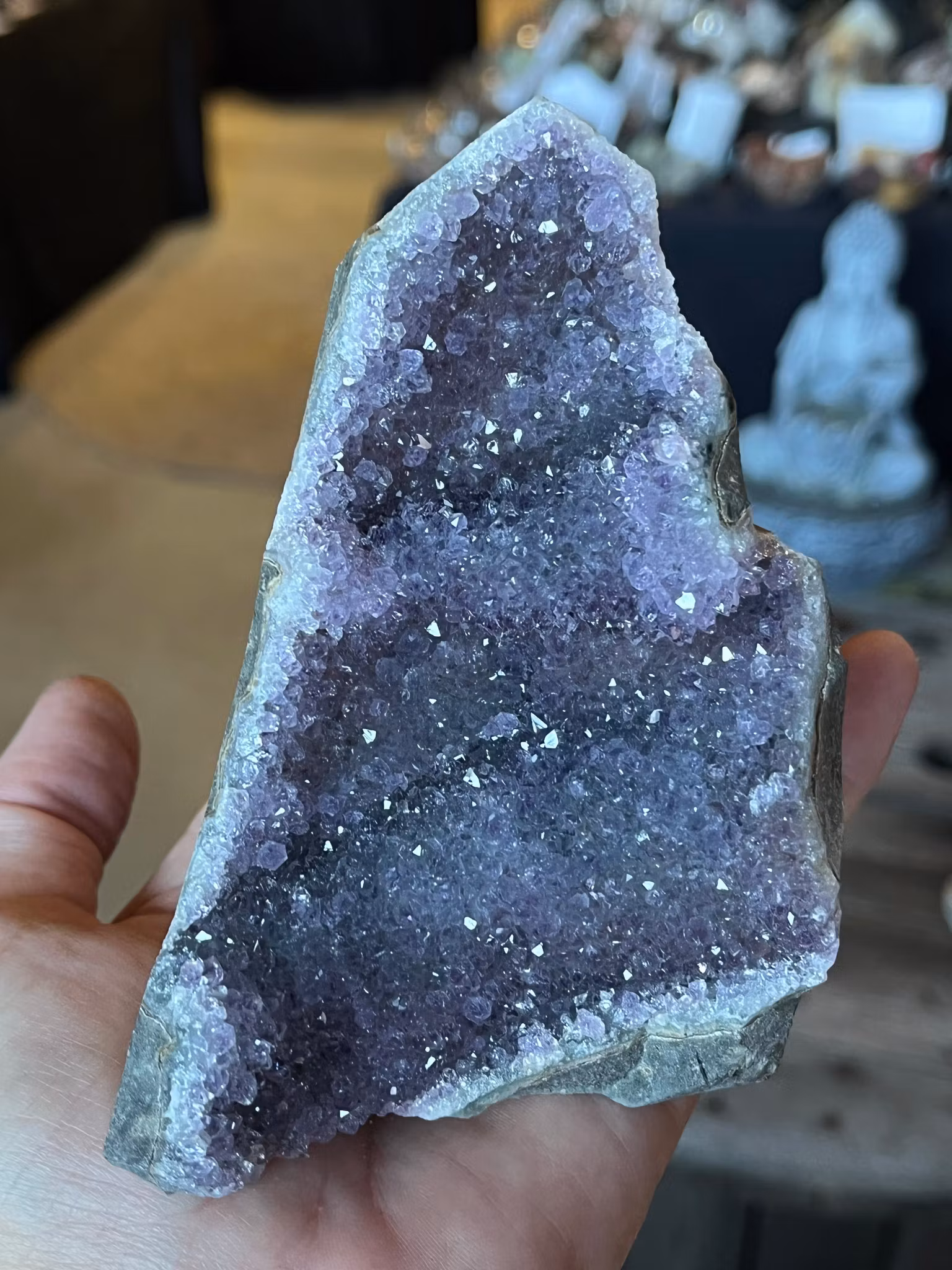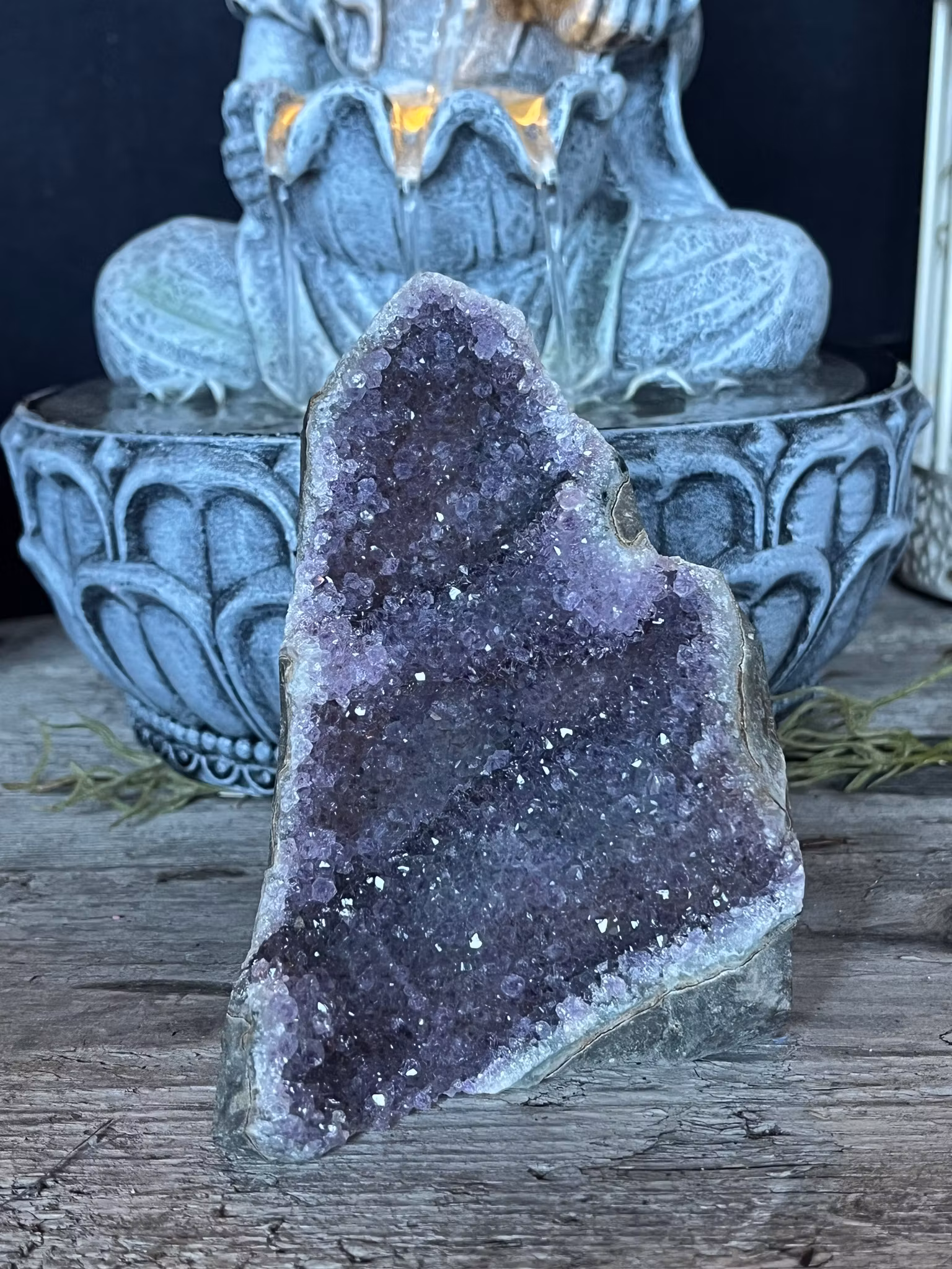 Placera ametisten vid sängen för lugn sömn, håll den i handen under meditation eller låt den rena din energi efter en stressig dag.