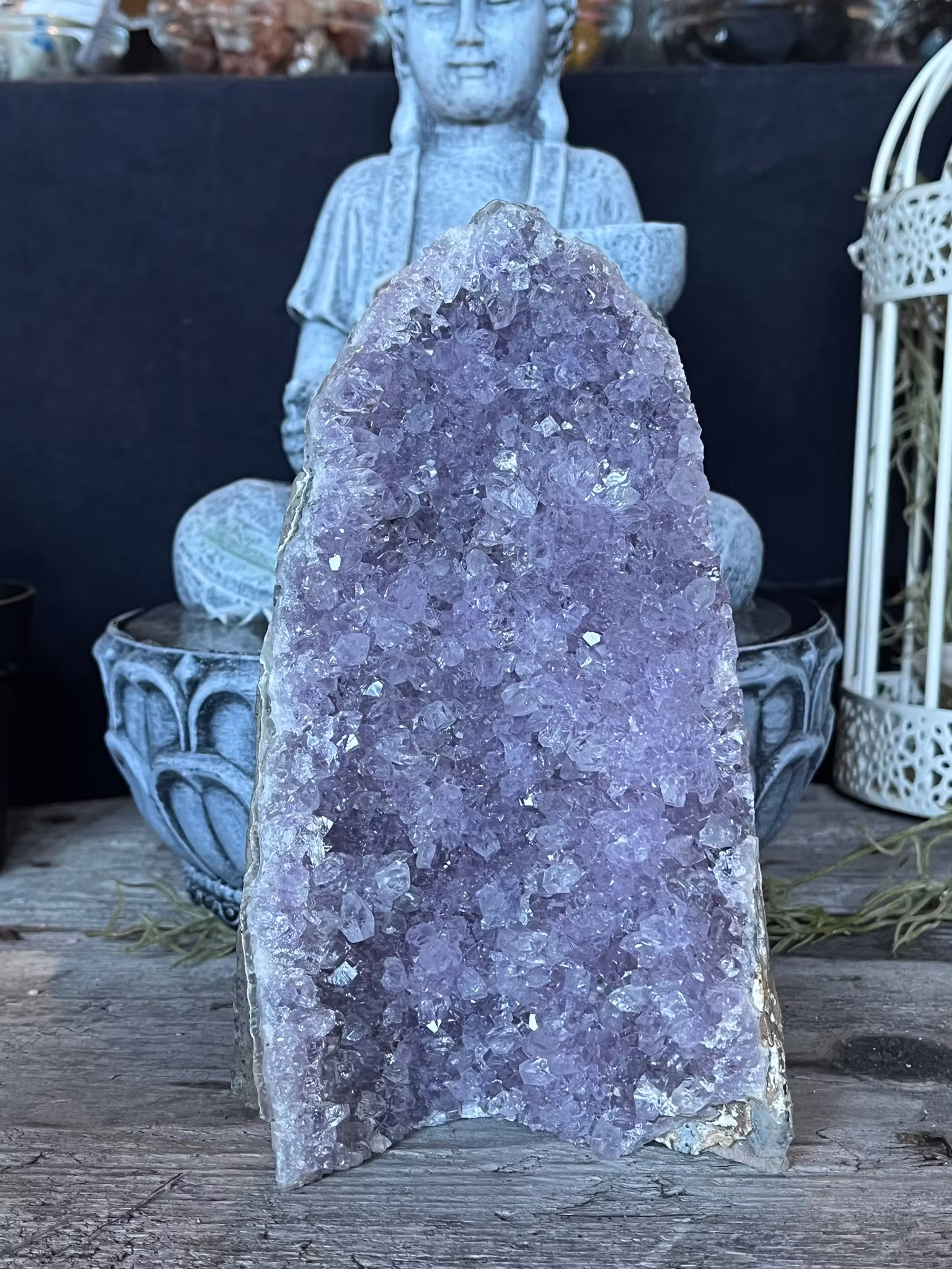 Placera ametisten vid sängen för lugn sömn, håll den i handen under meditation eller låt den rena din energi efter en stressig dag.