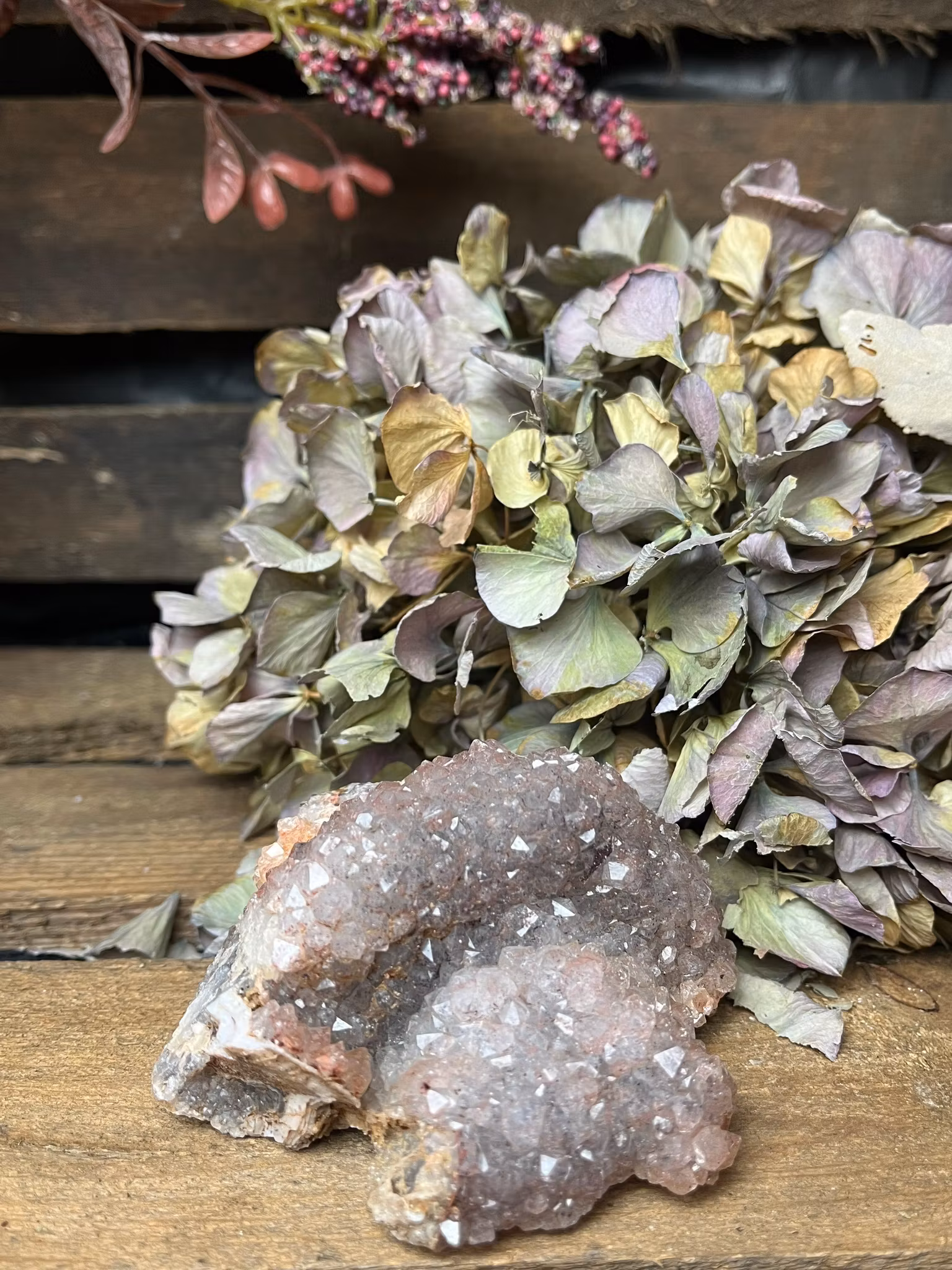 Andekvarts, även känd som “Spirit Quartz,” är en kraftfull kristall som främjar andlig medvetenhet och klarhet. Den hjälper till att öppna upp för högre dimensioner och andliga vägar, vilket gör den till en utmärkt sten för de som söker djupare andlig kontakt och vägledning. Andekvarts är också känd för sina skyddande egenskaper och fungerar som en barriär mot negativ energi, vilket gör den bra för att rensa rum och energifält. Dess kristallklara struktur och unika utseende symboliserar klarhet och renhet, och den hjälper till att rensa blockeringar både på fysisk och andlig nivå.