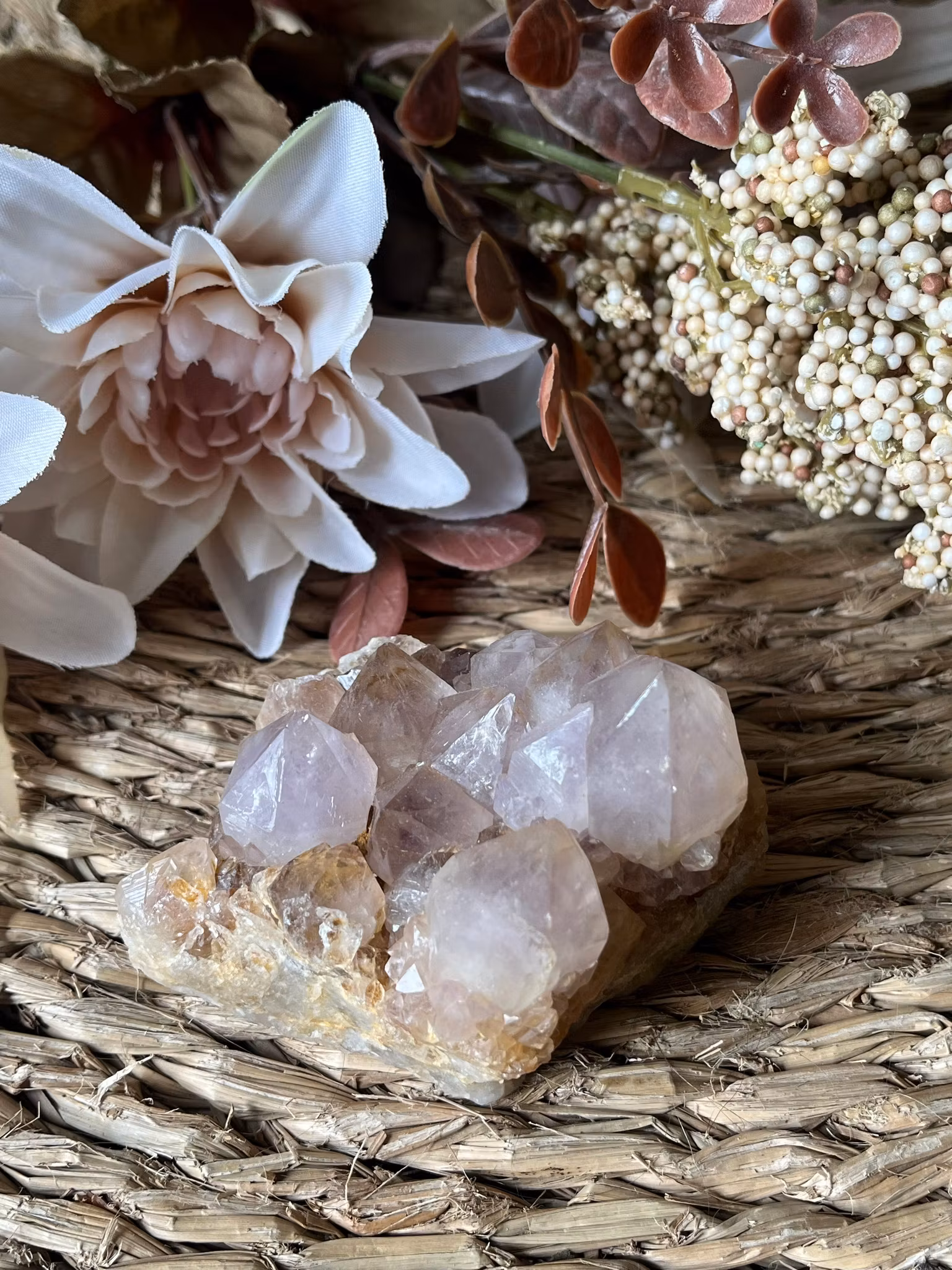 Andekvarts, även känd som “Spirit Quartz,” är en kraftfull kristall som främjar andlig medvetenhet och klarhet. Den hjälper till att öppna upp för högre dimensioner och andliga vägar, vilket gör den till en utmärkt sten för de som söker djupare andlig kontakt och vägledning. Andekvarts är också känd för sina skyddande egenskaper och fungerar som en barriär mot negativ energi, vilket gör den bra för att rensa rum och energifält. Dess kristallklara struktur och unika utseende symboliserar klarhet och renhet, och den hjälper till att rensa blockeringar både på fysisk och andlig nivå.