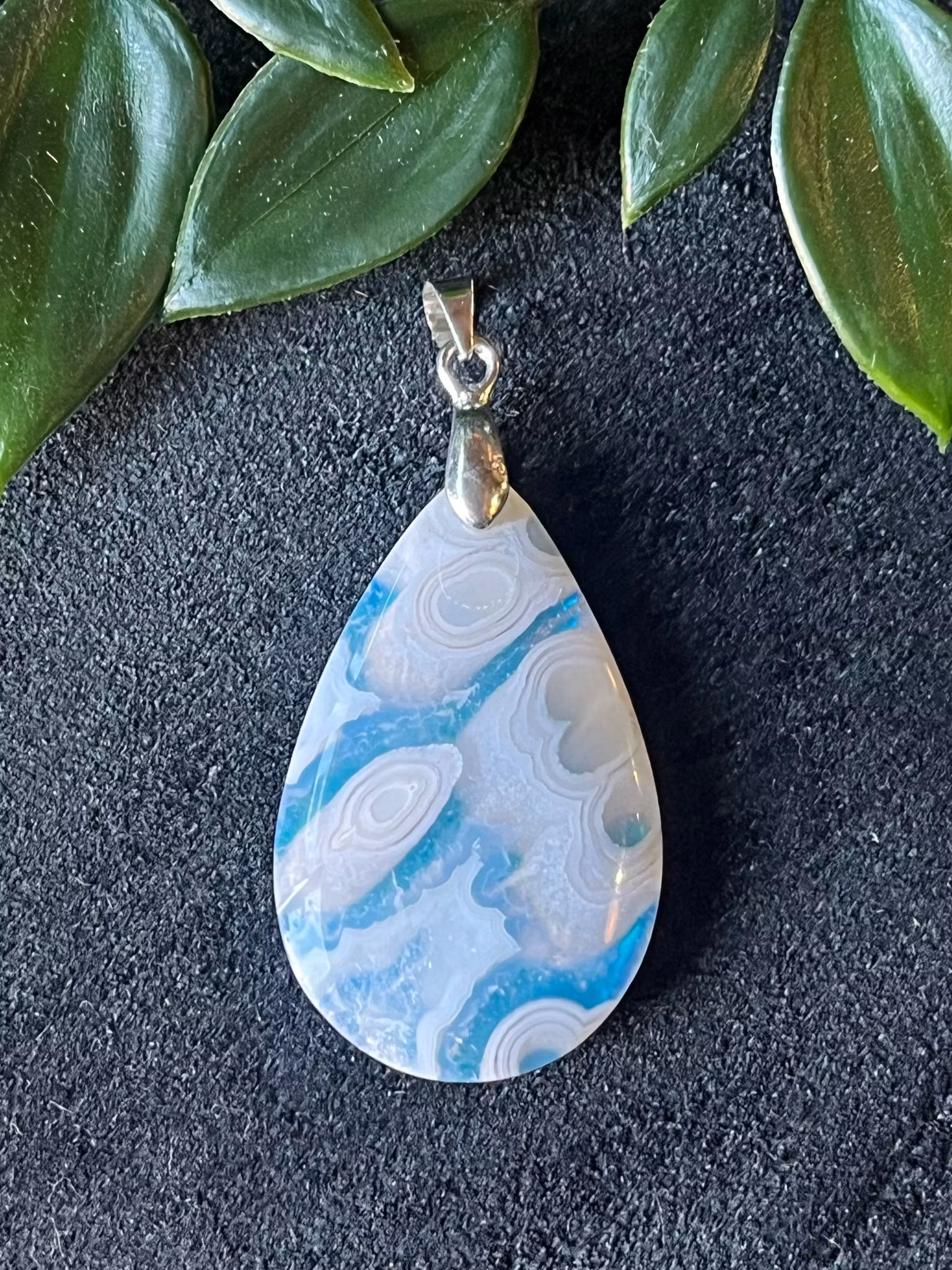 Unikt hänge av naturlig agat, aura behandlad. Ger en aura-effekt som framhäver stenens vackra mönster och färgskiftningar. (Liknar nästan opal)Varje hänge är ett konstverk från naturen – helt unikt i sitt utseende.