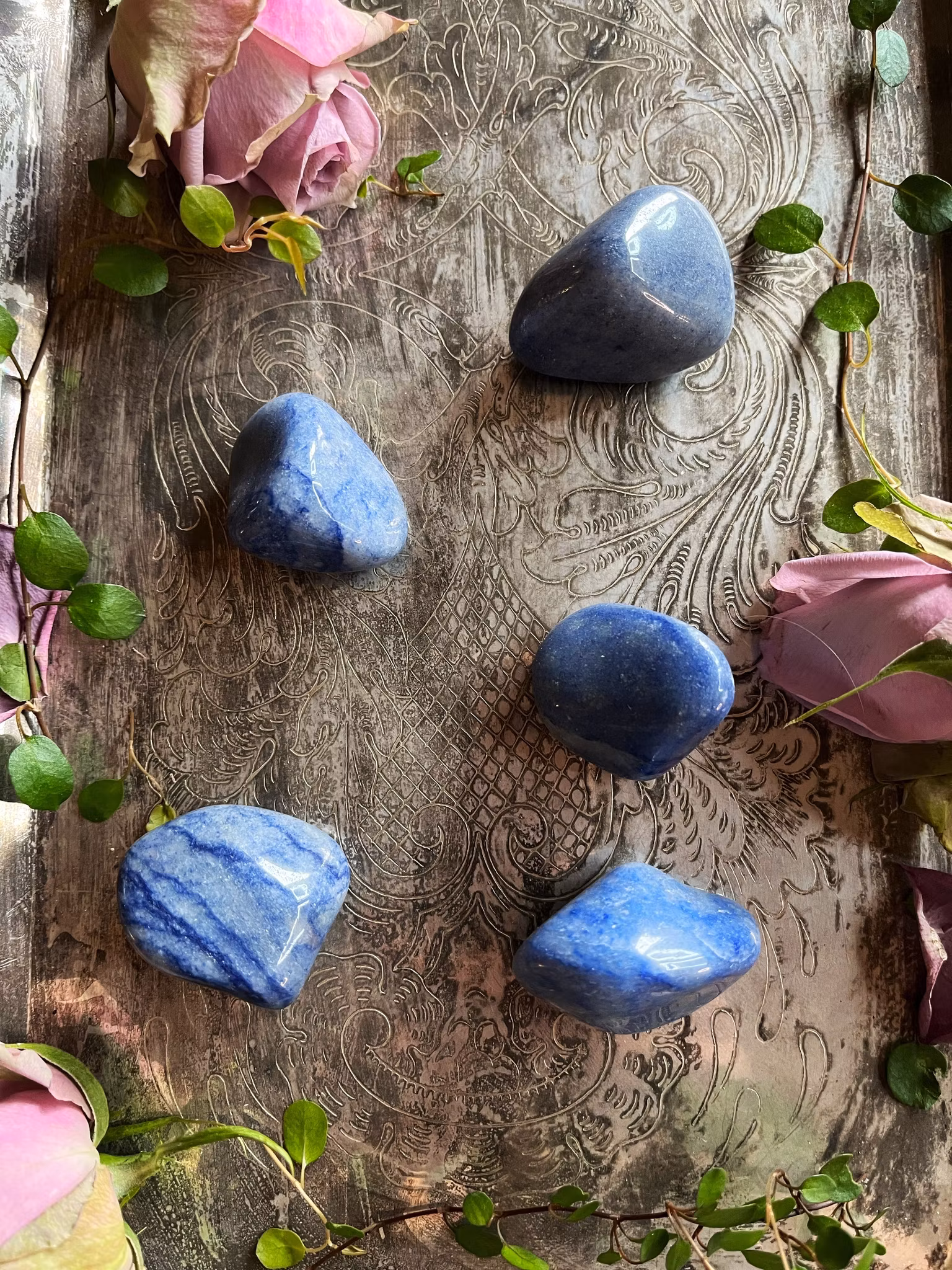 Blå Aventurin tillåter att andlig energi passerar in genom tredje ögat och halschakrat, hjälper dig utveckla din andlighet.