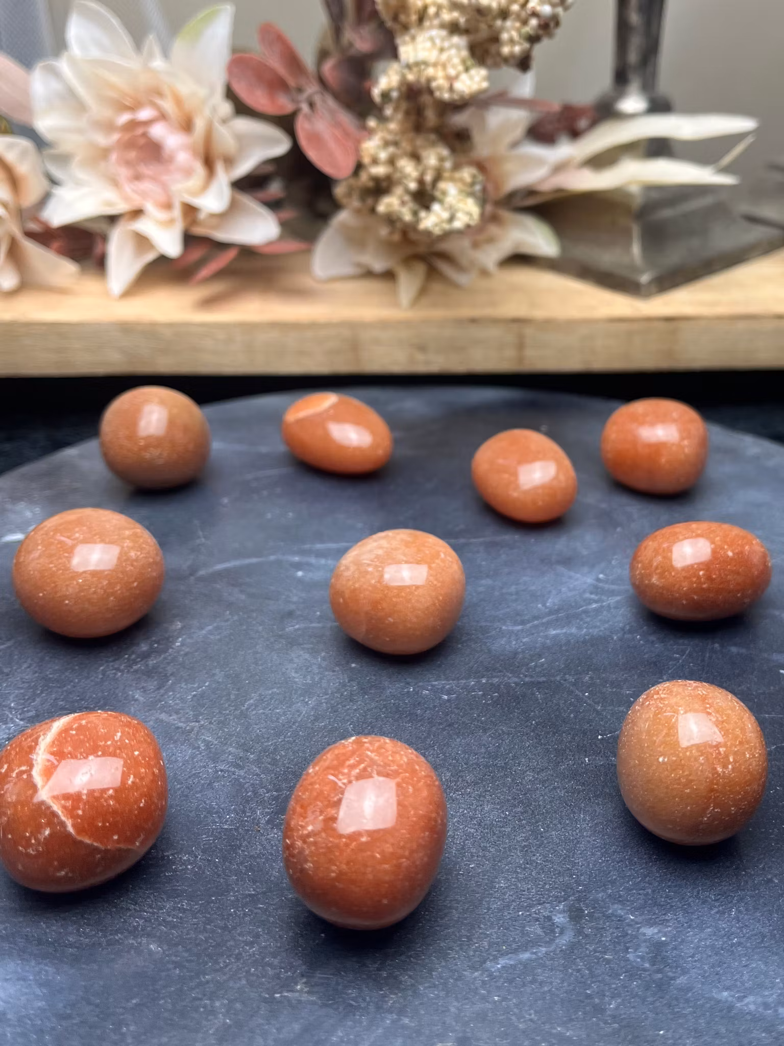 •Egenskaper: Orange Aventurin är en livlig kristall som utstrålar energi, glädje och optimism. Den är känd för att stimulera kreativitet, öka motivationen och ge en känsla av välbefinnande. Kristallen hjälper till att balansera känslor, särskilt under stressiga perioder, och stärker självförtroendet och viljestyrkan. Orange Aventurin kan också hjälpa till att frigöra gamla känslomässiga blockeringar och skapa utrymme för ny inspiration och positiva förändringar.