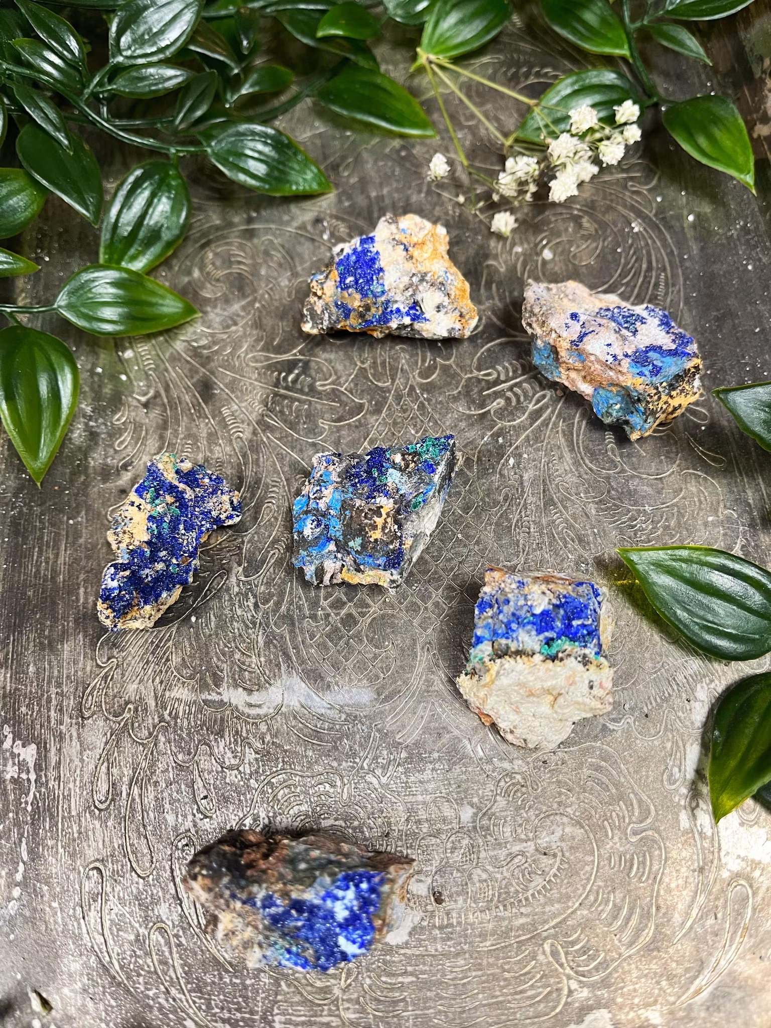 Azurit/Malakit består av 2 mineraler, Azurit och Malakit som namnet säger. Båda har lite olika egenskaper och kan läsas var för sig. Men som en kombination har den en liten annorlunda egenskap.