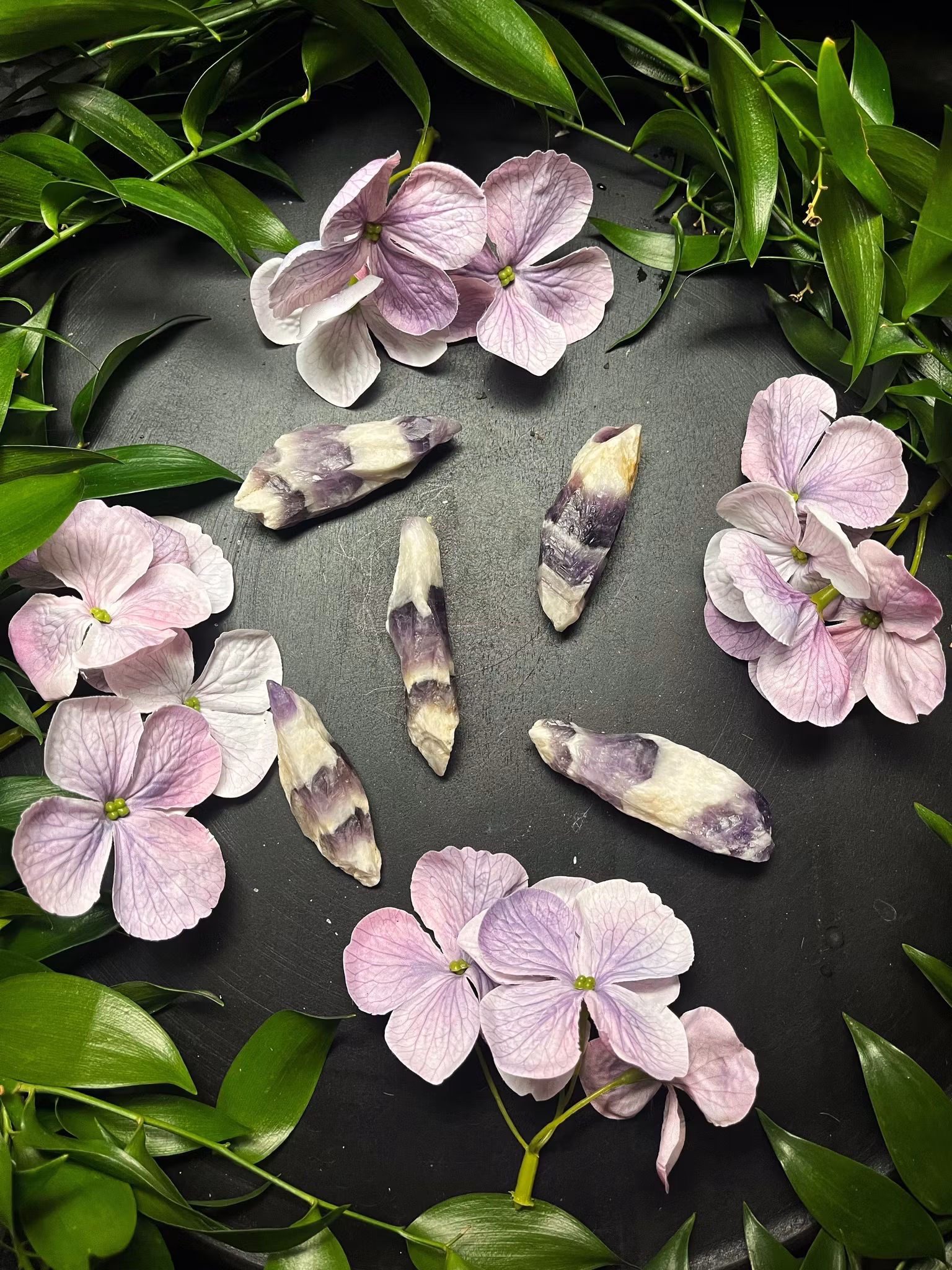 Band Ametist är en blandning av Ametist och vit kvarts, blandade tillsammans. Den kallas även Chevron beroende på hur mönstret ser ut i stenen. Ger styrka, stressbefriande en mycket andlig sten.