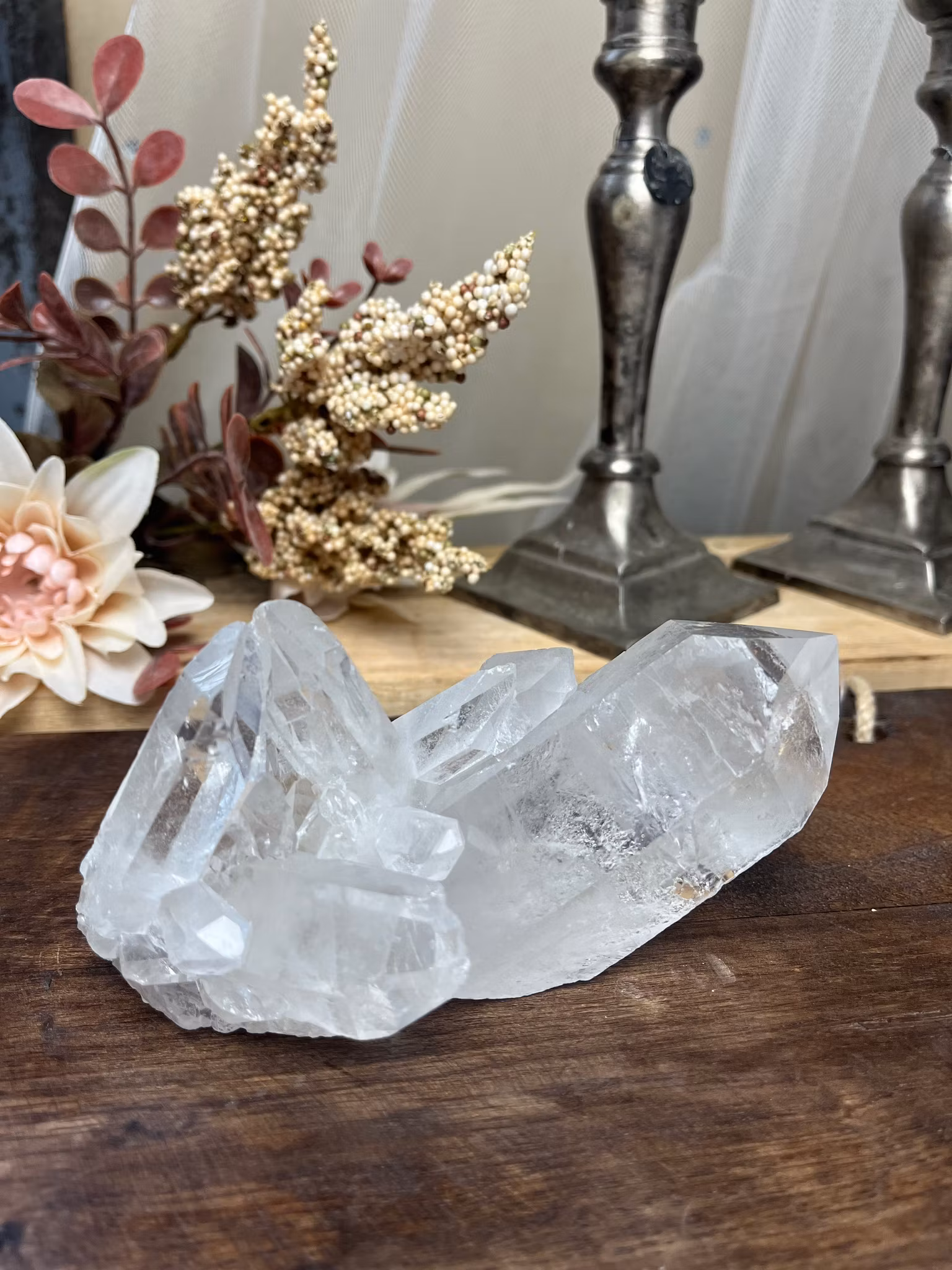 •Egenskaper: Bergkristall är en av de mest kraftfulla och allsidiga kristallerna. Den är känd för sina klara, genomskinliga egenskaper som symboliserar renhet, klarhet och energi. Bergkristall är en mästare av energi och anses vara en universalsten som förstärker och balanserar alla andra kristallers energier. Dess förmåga att renar energifält och rensa bort blockeringar gör den idealisk för att skapa balans och harmoni, både fysiskt och emotionellt. Bergkristall är också känd för att förbättra mental klarhet, öka fokus och stimulera intuition och andlig medvetenhet.