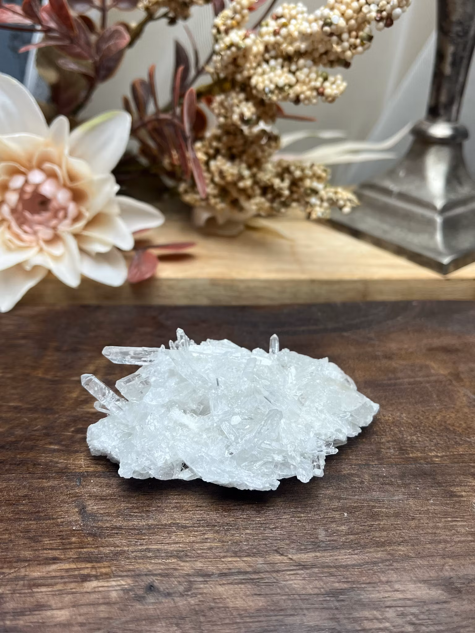 •Egenskaper: Bergkristall är en av de mest kraftfulla och allsidiga kristallerna. Den är känd för sina klara, genomskinliga egenskaper som symboliserar renhet, klarhet och energi. Bergkristall är en mästare av energi och anses vara en universalsten som förstärker och balanserar alla andra kristallers energier. Dess förmåga att renar energifält och rensa bort blockeringar gör den idealisk för att skapa balans och harmoni, både fysiskt och emotionellt. Bergkristall är också känd för att förbättra mental klarhet, öka fokus och stimulera intuition och andlig medvetenhet.