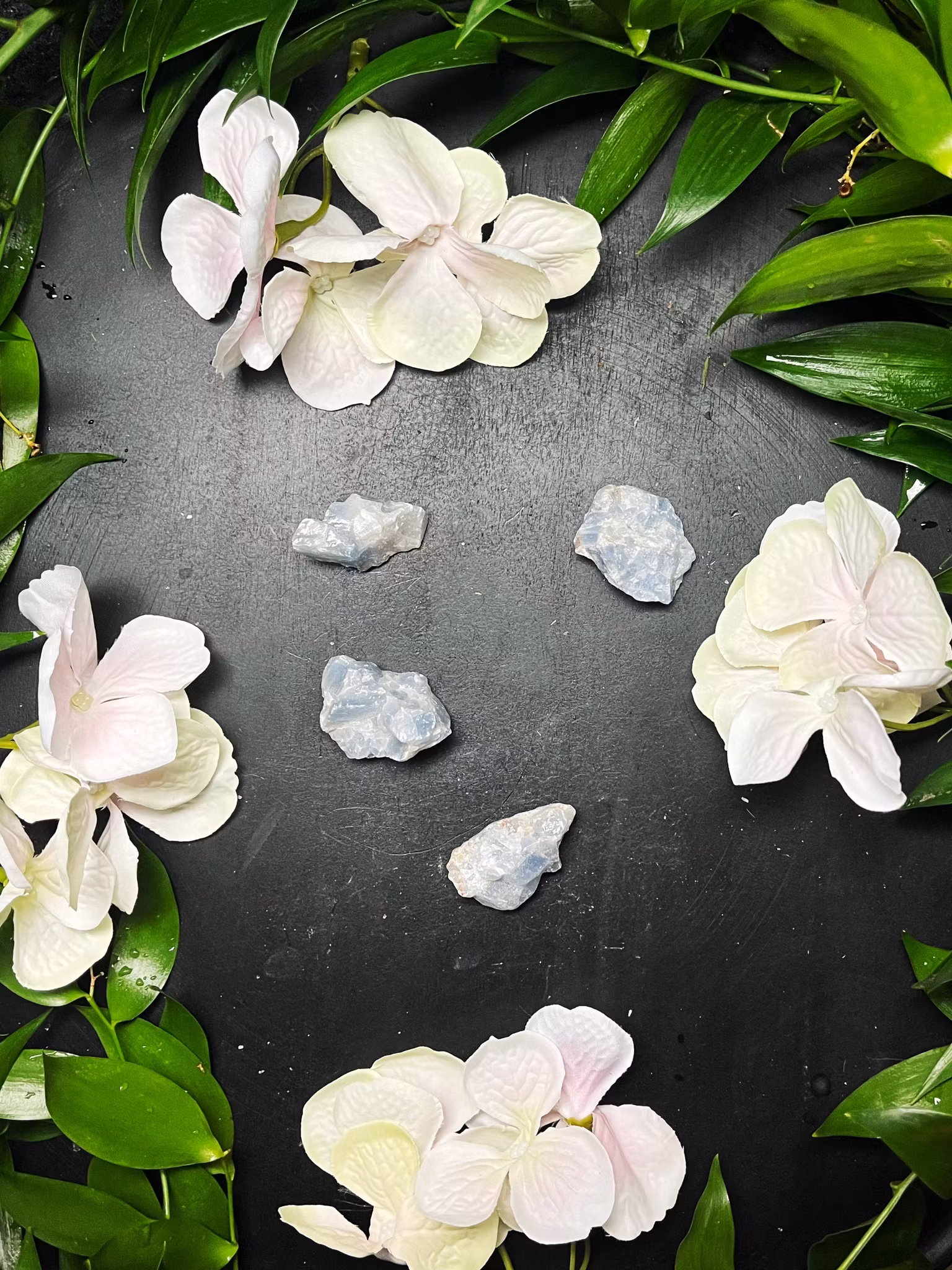 Använd blå kalcit på hals chakrat, för att rensa och energisätta detta chakra. Fungerar också på alla typer av halsproblem. Hjälper dig ta fram ditt eget inre ljus och och se hur vackert allt är kring dig och att du är del av universums skapande.
