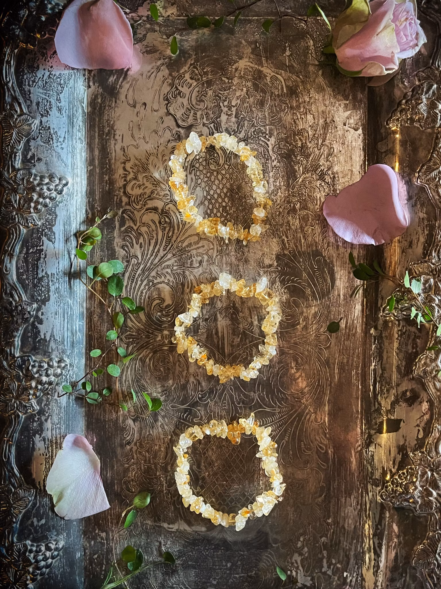 Citrinen energisätts av solen, värmer och renar energier. Skapar ett kraftigt beskydd mot negativitet. Ger ett starkt självförtroende och självkänsla.