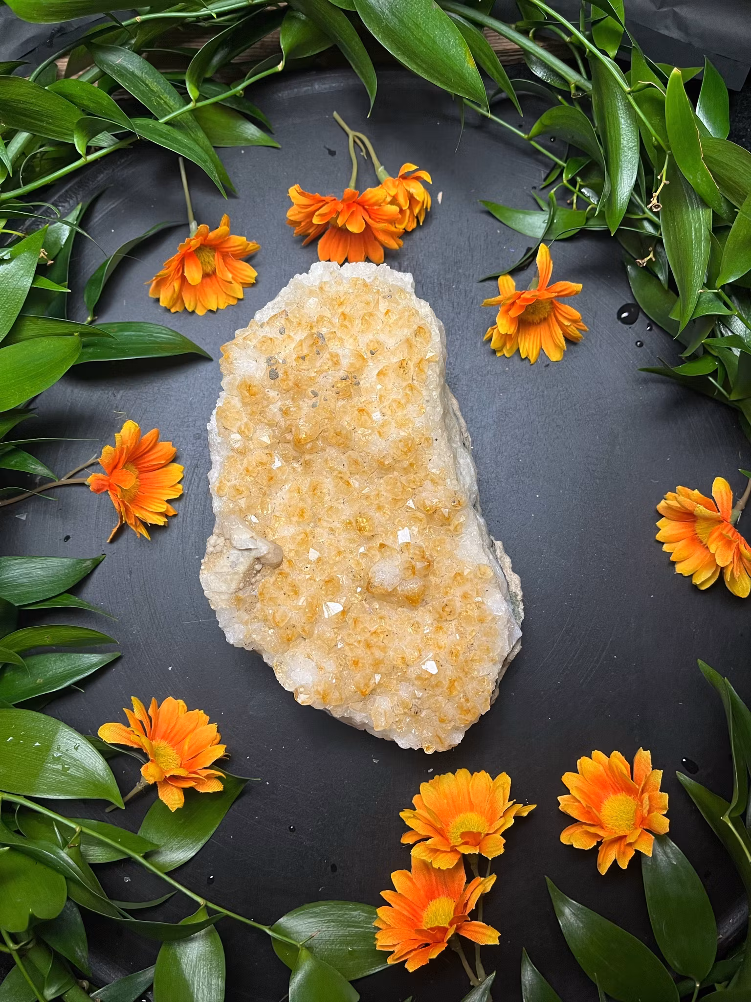 Citrin (oavsett vilken sort) har en härlig vibration den smittar av sig av sin ljusa glädjefulla energi. Dämpar alla tillstånd av oro, och sägs vara bra som examen sten. Genom arbete med Citrin kan man lättare överkomma depressioner, nedstämdhet och ilska. Citrin kan aktivera ens fantasi och ge klarare visioner. Citrin arbetar på solar plexus chakrat.