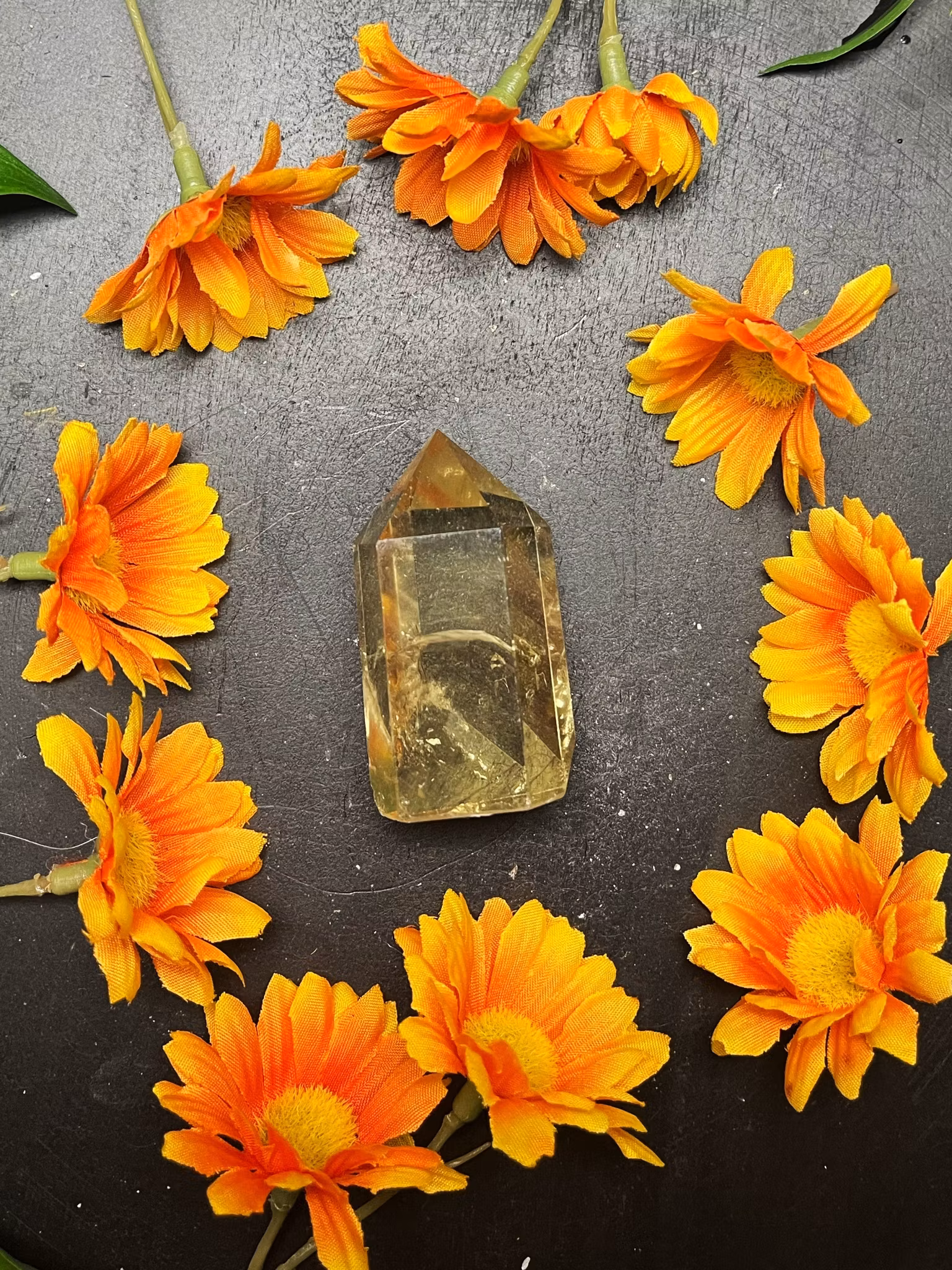 Citrin har en härlig vibration den smittar av sig av sin ljusa glädjefulla energi. Dämpar alla tillstånd av oro, och sägs vara bra som examen sten. Genom arbete med Citrin kan man lättare överkomma depressioner, nedstämdhet och ilska. Citrin kan aktivera ens fantasi och ge klarare visioner. Citrin arbetar på solar plexus chakra.