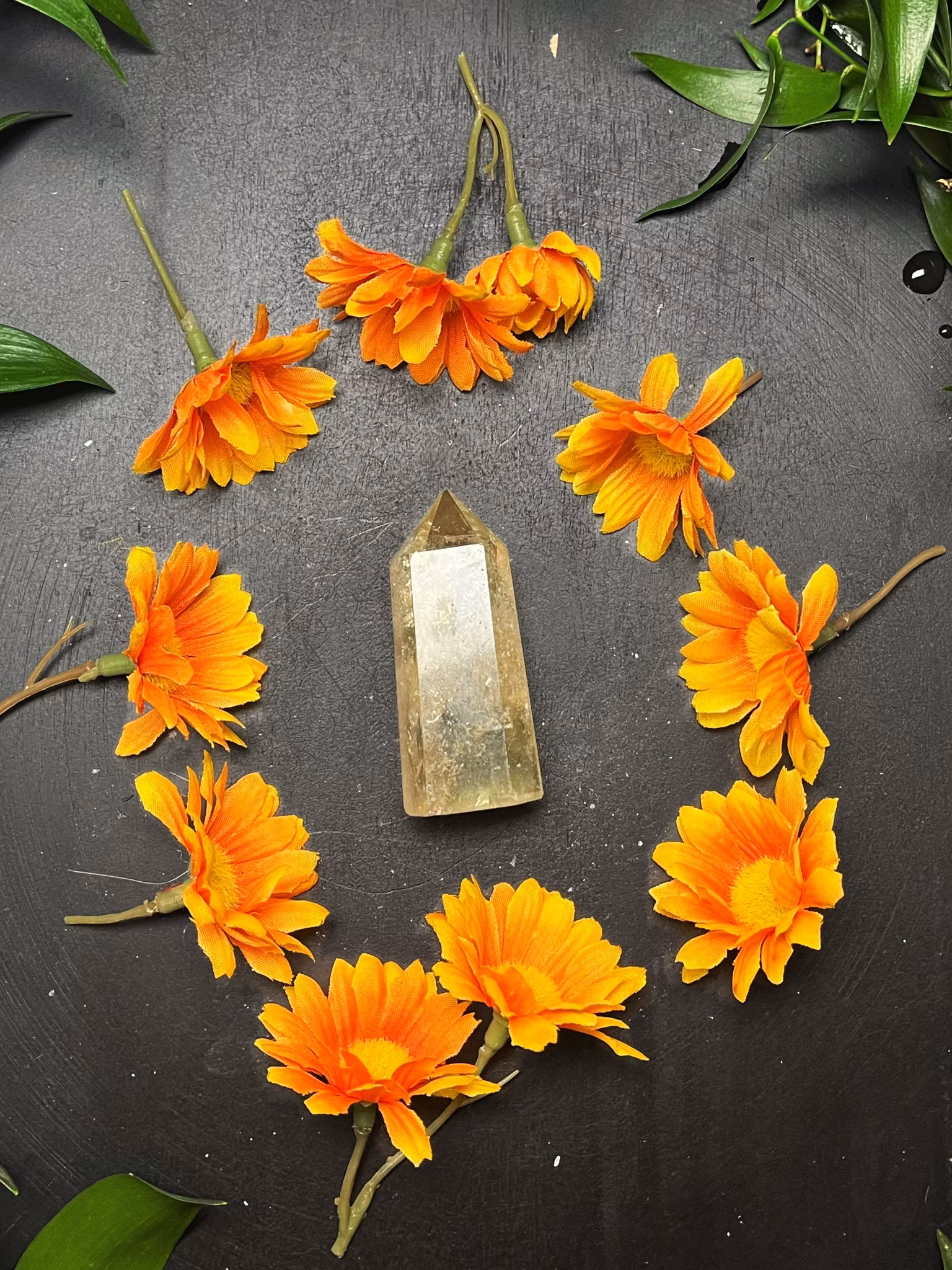 Citrin har en härlig vibration den smittar av sig av sin ljusa glädjefulla energi. Dämpar alla tillstånd av oro, och sägs vara bra som examen sten. Genom arbete med Citrin kan man lättare överkomma depressioner, nedstämdhet och ilska. Citrin kan aktivera ens fantasi och ge klarare visioner. Citrin arbetar på solar plexus chakra.