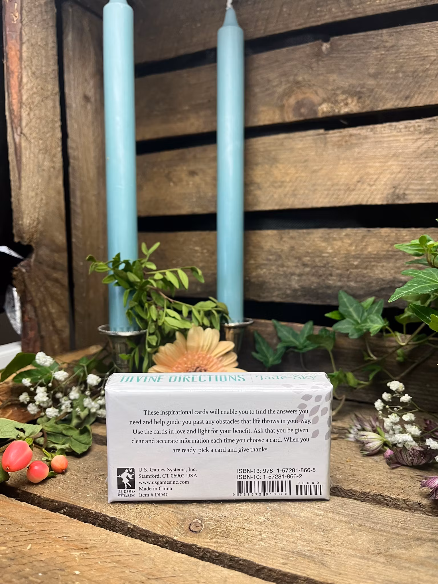 Jade-Sky, Psychic/Medium, author of What Happens Next, shows you that it is possible to not only connect with your spirit guides, but, also, the energy of the Universe. These 40 beautifully simple inspirational cards can give you the answers that you need to guide you past any obstacles in life. Call upon your spirit guides and angels to help you to use the cards in love and light for your benefit. Ask that you be given clear and accurate information each time you choose a card. When you are ready, pick up the cards of Divine Guidance and thank your spirit guides for their help. These cards are a visual reminder or tool,to help you to focus your intent on what you would like from the Universe. DIVINE DIRECTIONS are powerful cards to provide helpful nudges and clear inspiration from the Universe to steer you to the right path.