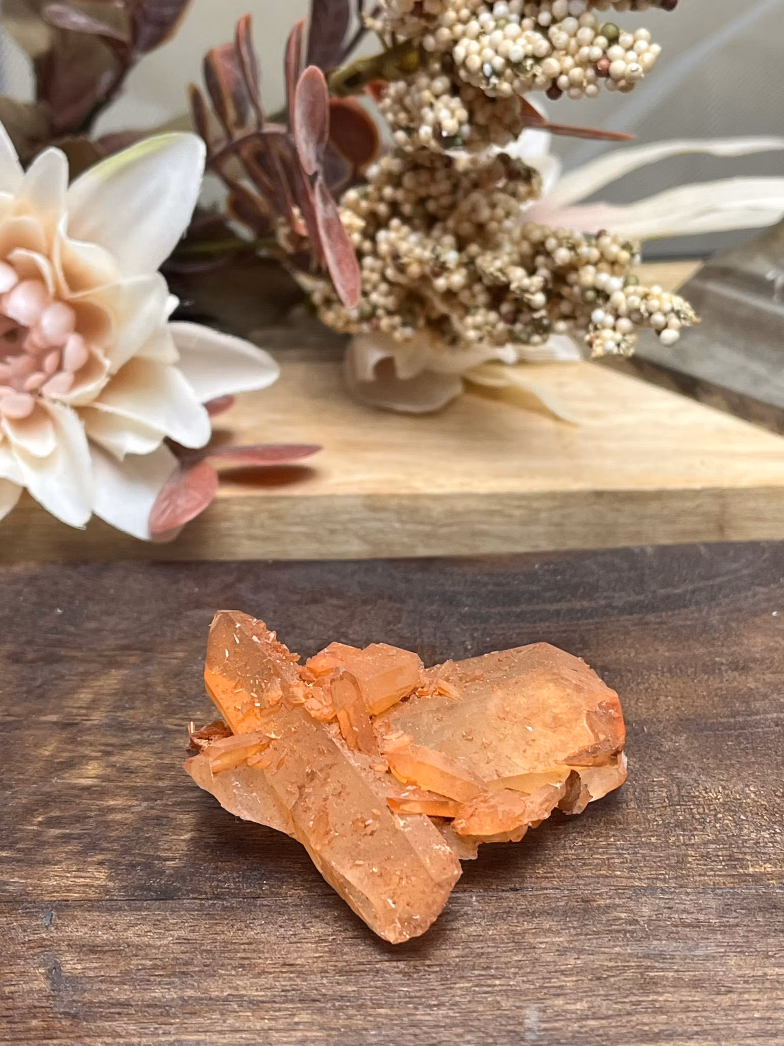 •Egenskaper: Eldkvarts, även känd som “Fire Quartz,” är en kraftfull kristall som förenar energin från både eldkristaller och kvarts. Den är känd för sina intensiva, varma färger, som kan sträcka sig från röd till orange och guld, och är en sten som representerar passion, kreativitet och vitalitet. Eldkvarts är en sten som aktiverar energiflödet i kroppen och främjar en känsla av fysisk och mental energi. Den har förmågan att stimulera både solarplexus och rotchakrat, vilket gör den idealisk för att öka självsäkerhet, mod och livskraft. Eldkvarts anses även vara en sten för transformation, eftersom den hjälper till att omvandla negativa energier till positiva och upplyftande vibbar.
