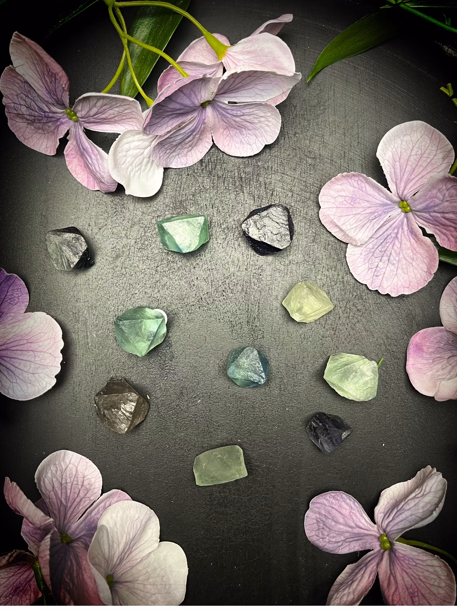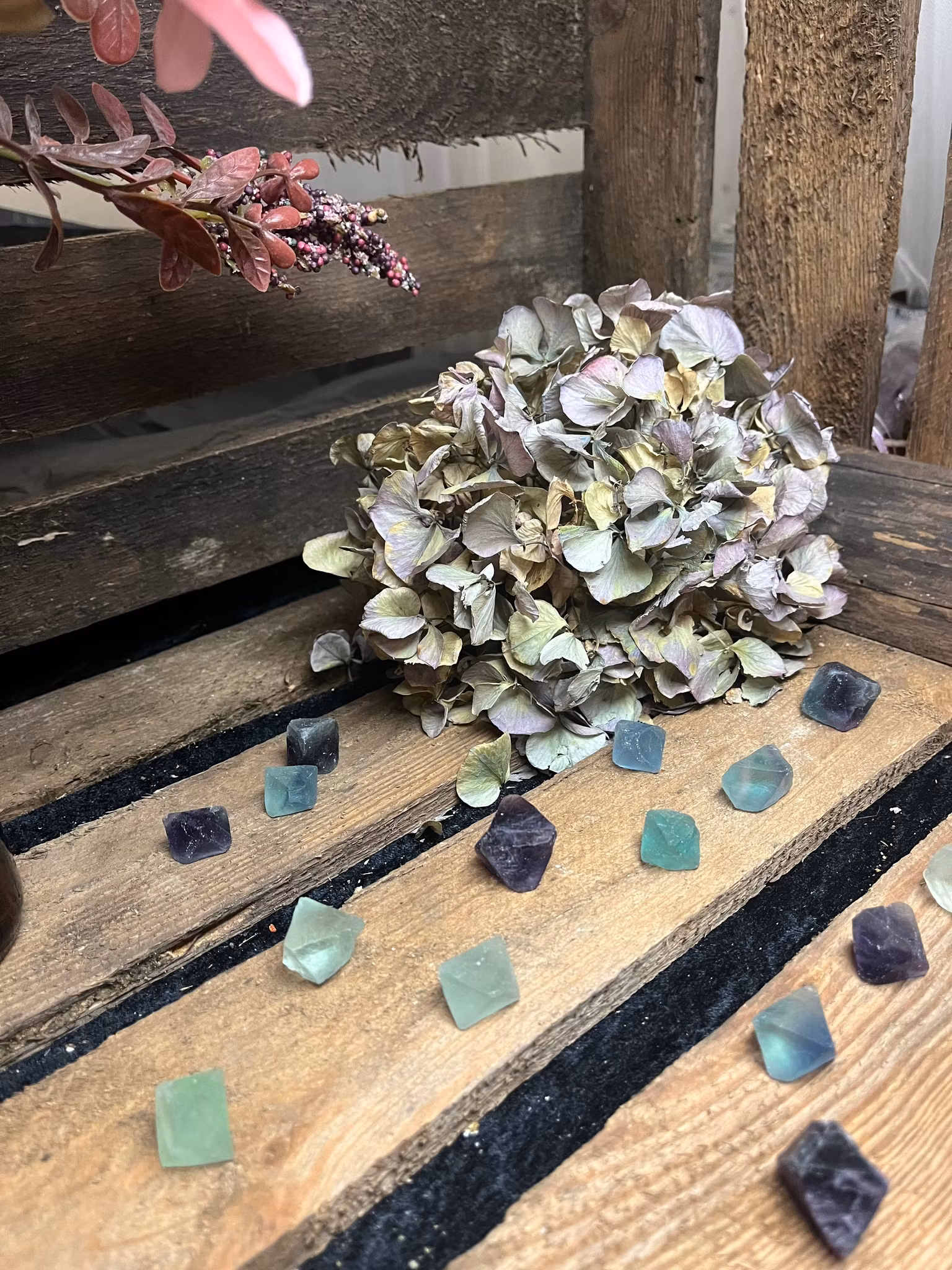 Fluorit i oktaederform är en kraftfull kristall som symboliserar balans, mental klarhet och andlig tillväxt. Oktaederformen representerar luftens element och kopplar till hjärtchakrat, vilket hjälper till att skapa balans mellan känslor och intellekt. Fluorit hjälper till att rensa negativa energier, stärka fokus och förbättra beslutsförmågan. Oktaedern är också kopplad till medvetenhet och självreflektion, vilket gör den perfekt för meditation och personlig utveckling.