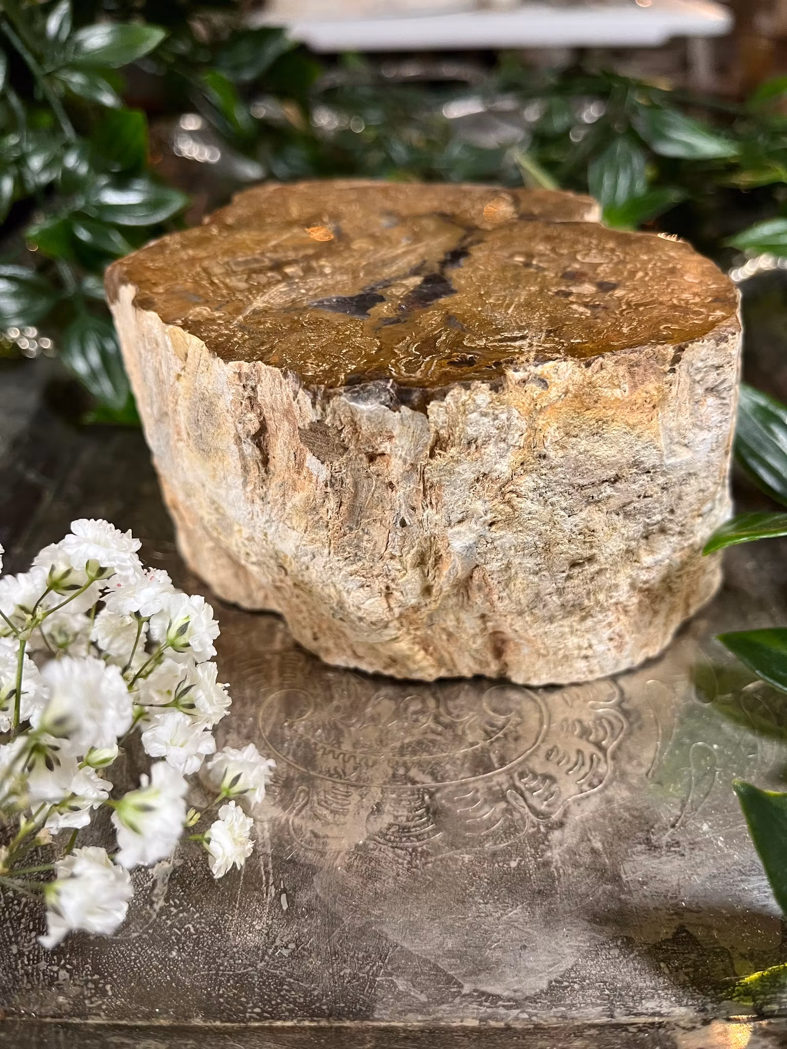 Förstenat trä arbetar på bas och sakral chakrat och för in healing energi till både den fysiska kroppen såväl som känslomässiga. Förstenat trä innehåller föråldrade energier en koppling till tidigare liv.
