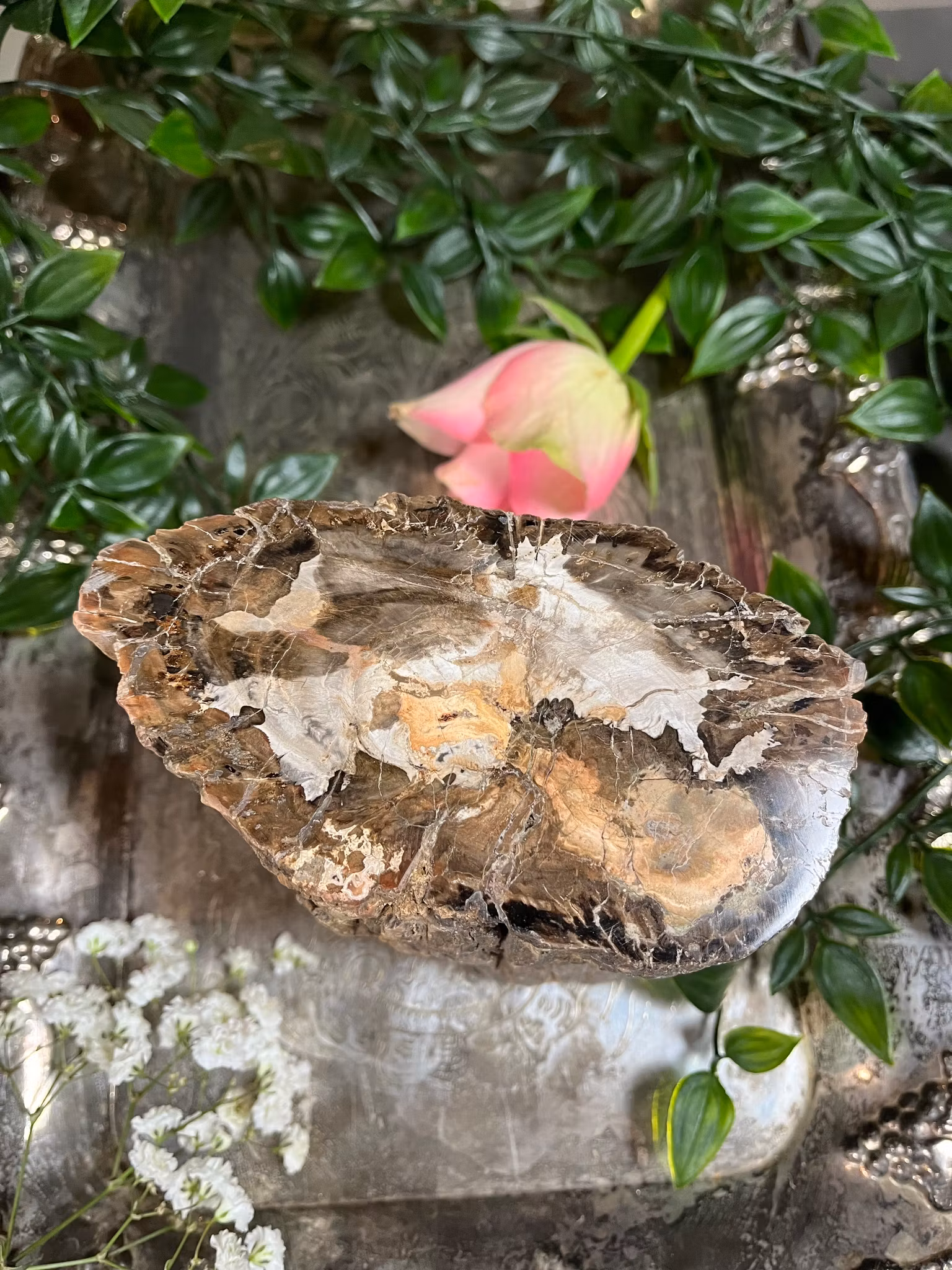 Förstenat trä arbetar på bas och sakral chakrat och för in healing energi till både den fysiska kroppen såväl som känslomässiga. Förstenat trä innehåller föråldrade energier en koppling till tidigare liv.