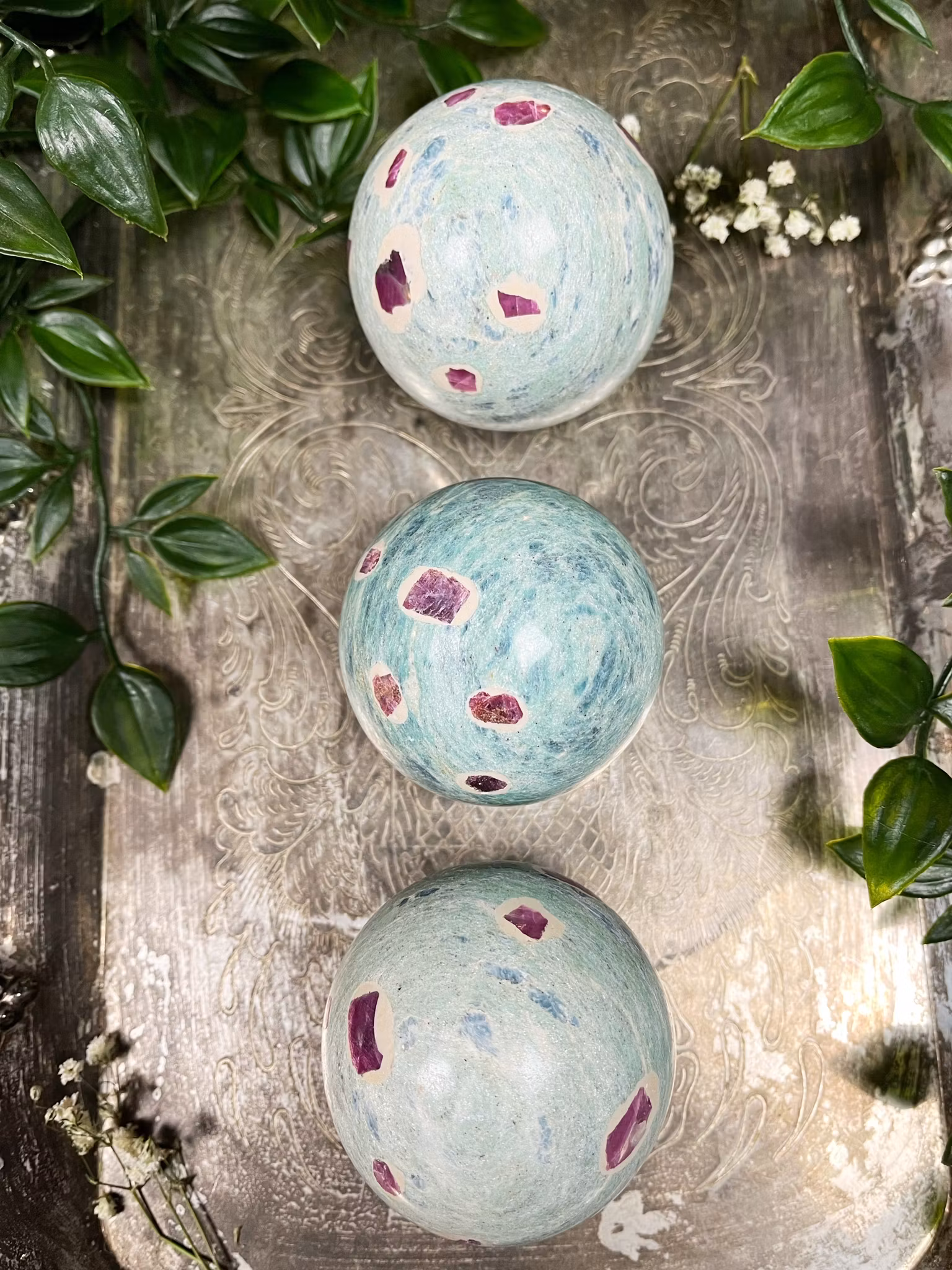 När fuschit med rubin kombineras med andra stenar förstärks dessa energier.