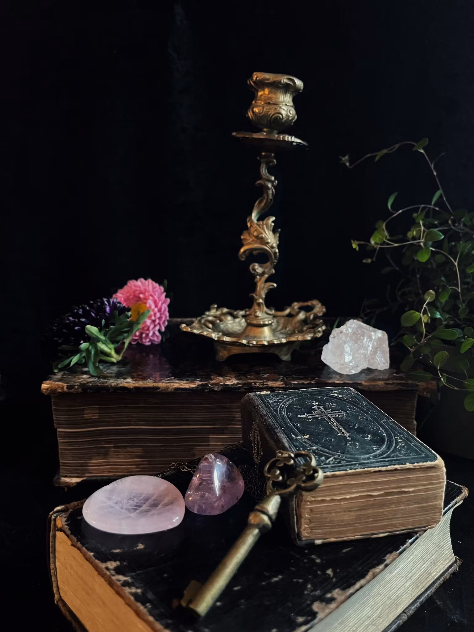 super fin ljusstake i mässing med plats för rökelse och kristaller. Perfekt för ritual