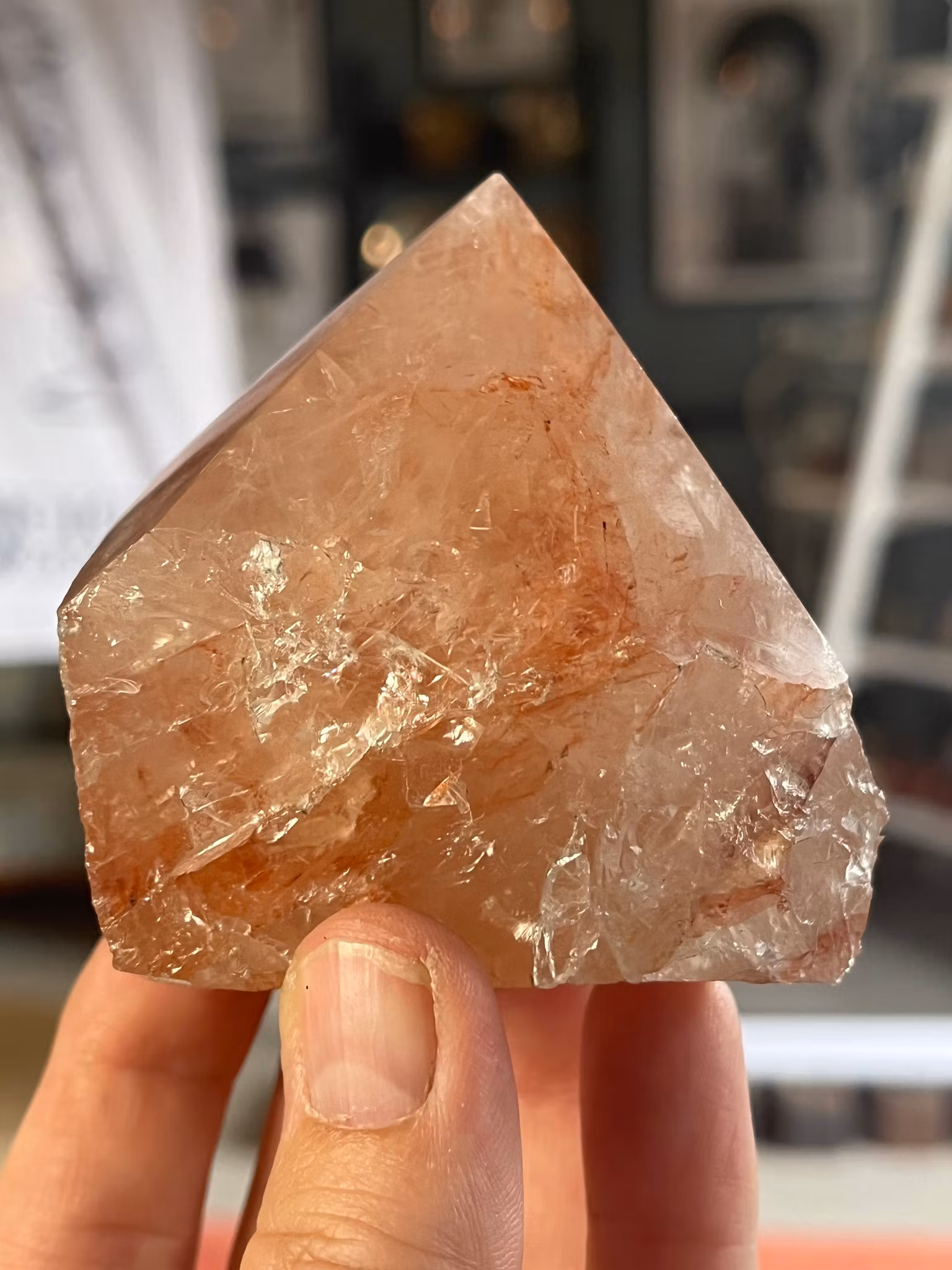 Hematoid Kvarts förstärker kvartskristallens egenskaper med de stärkande egenskaperna av Hematit. Tar bort negativitet, och förvandlar den till villkorslös kärlek och ljus. Hematoid kvarts är mycket användbar i healing, då den balanserar både kropp och själ.