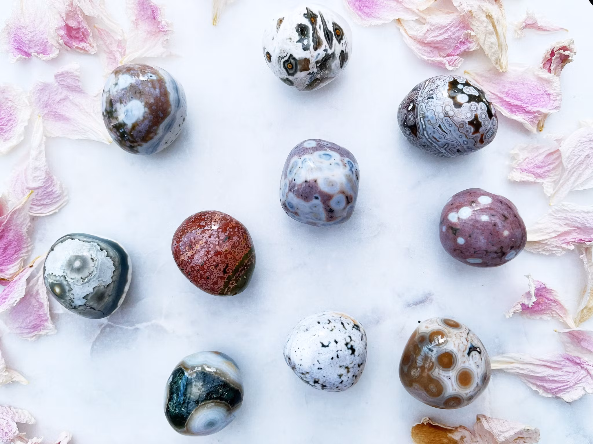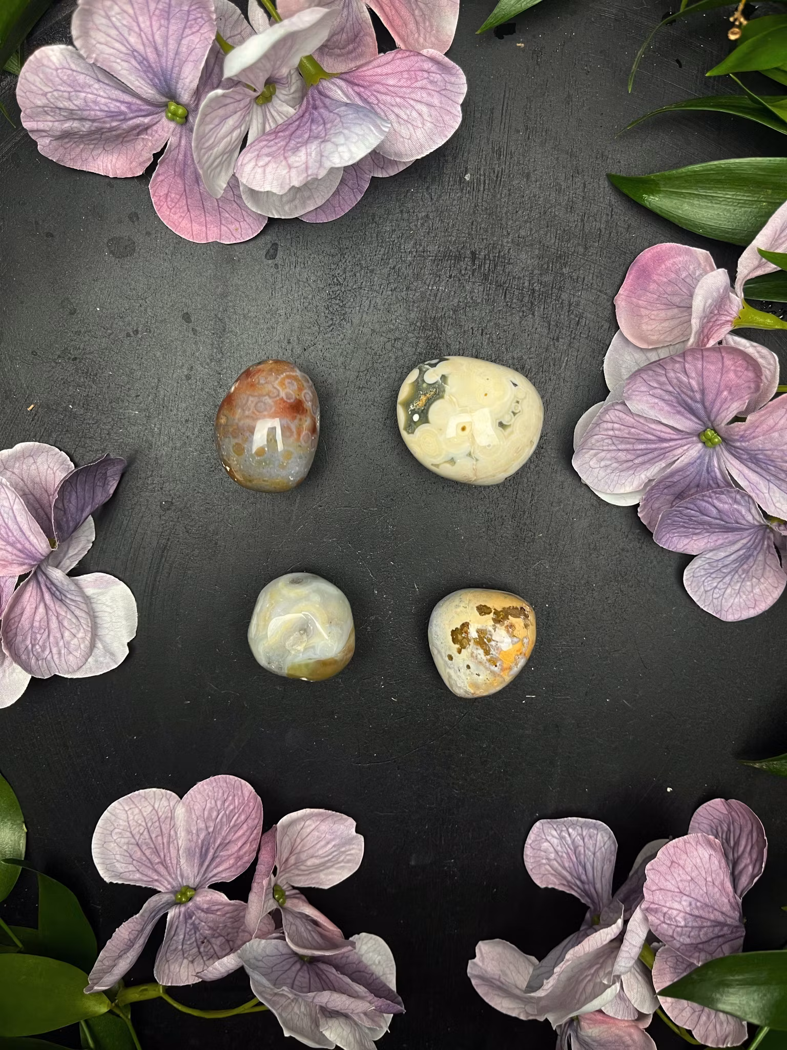 Ocean jaspis är en underbar sten vid förändringar och med healing, den för in glädje i ditt liv och lättar upp tankar. Hjälper dig släppa taget om negativitet och negativa tankar, en fantastisk sten om du behöver lätta dina tankar och energier.