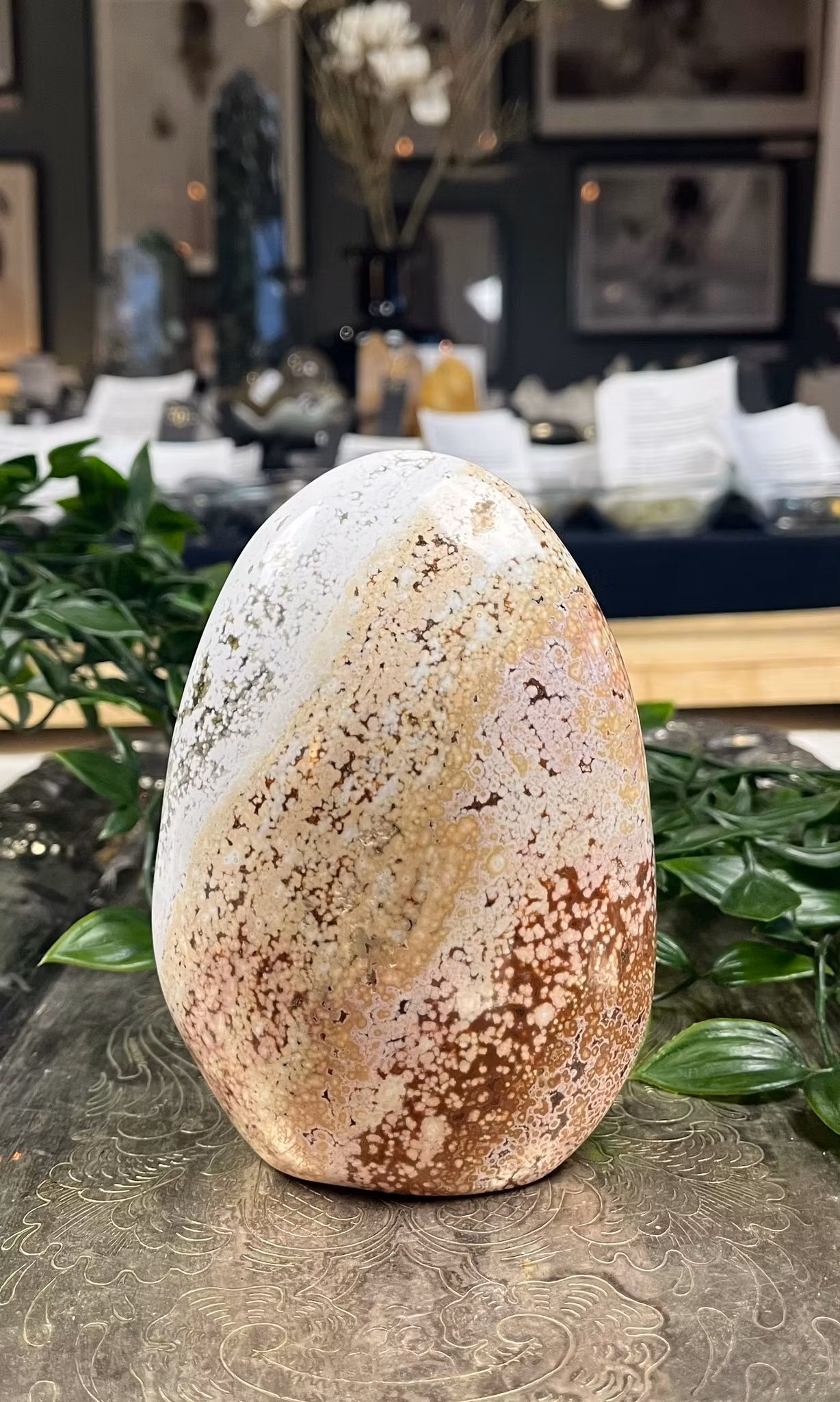 Ocean jaspis är en underbar sten vid förändringar och med healing, den för in glädje i ditt liv och lättar upp tankar. Hjälper dig släppa taget om negativitet och negativa tankar, en fantastisk sten om du behöver lätta dina tankar och energier.