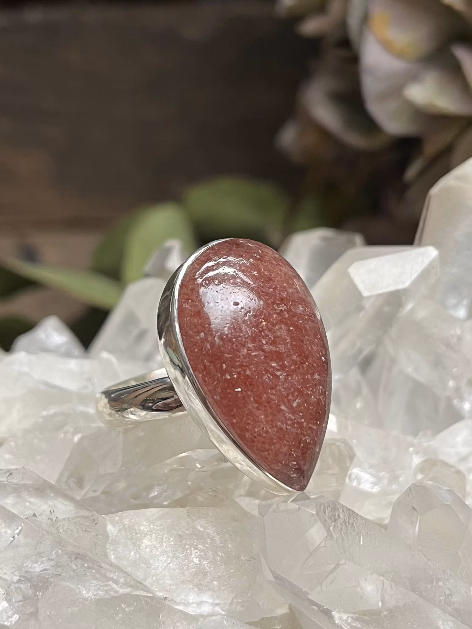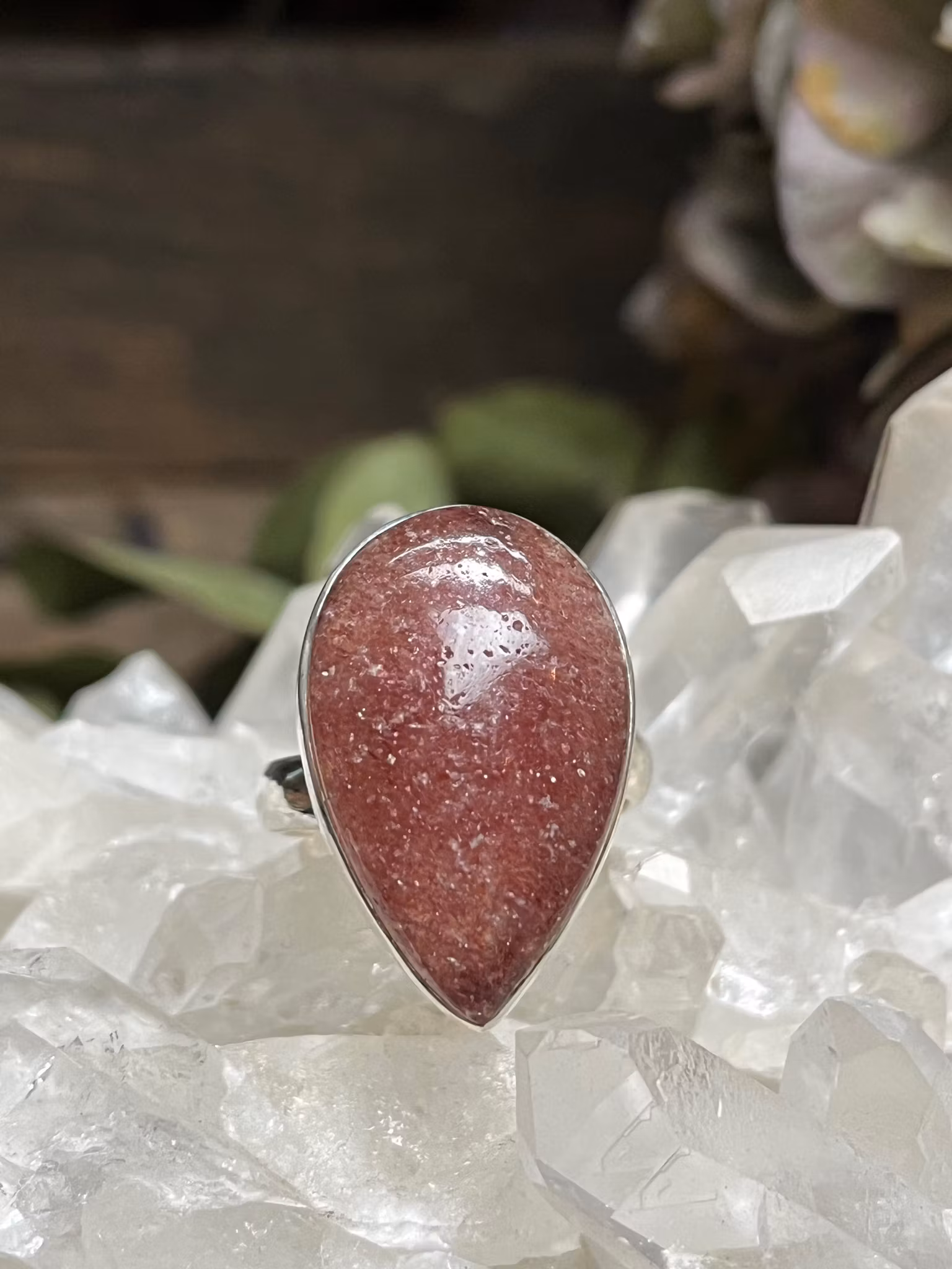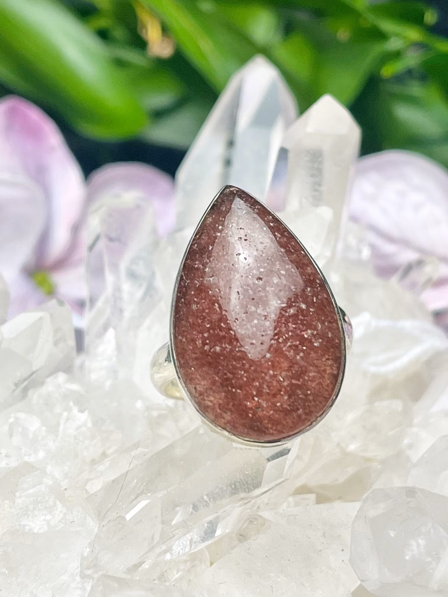 Jordgubbskvarts ring sterling silver ställbar