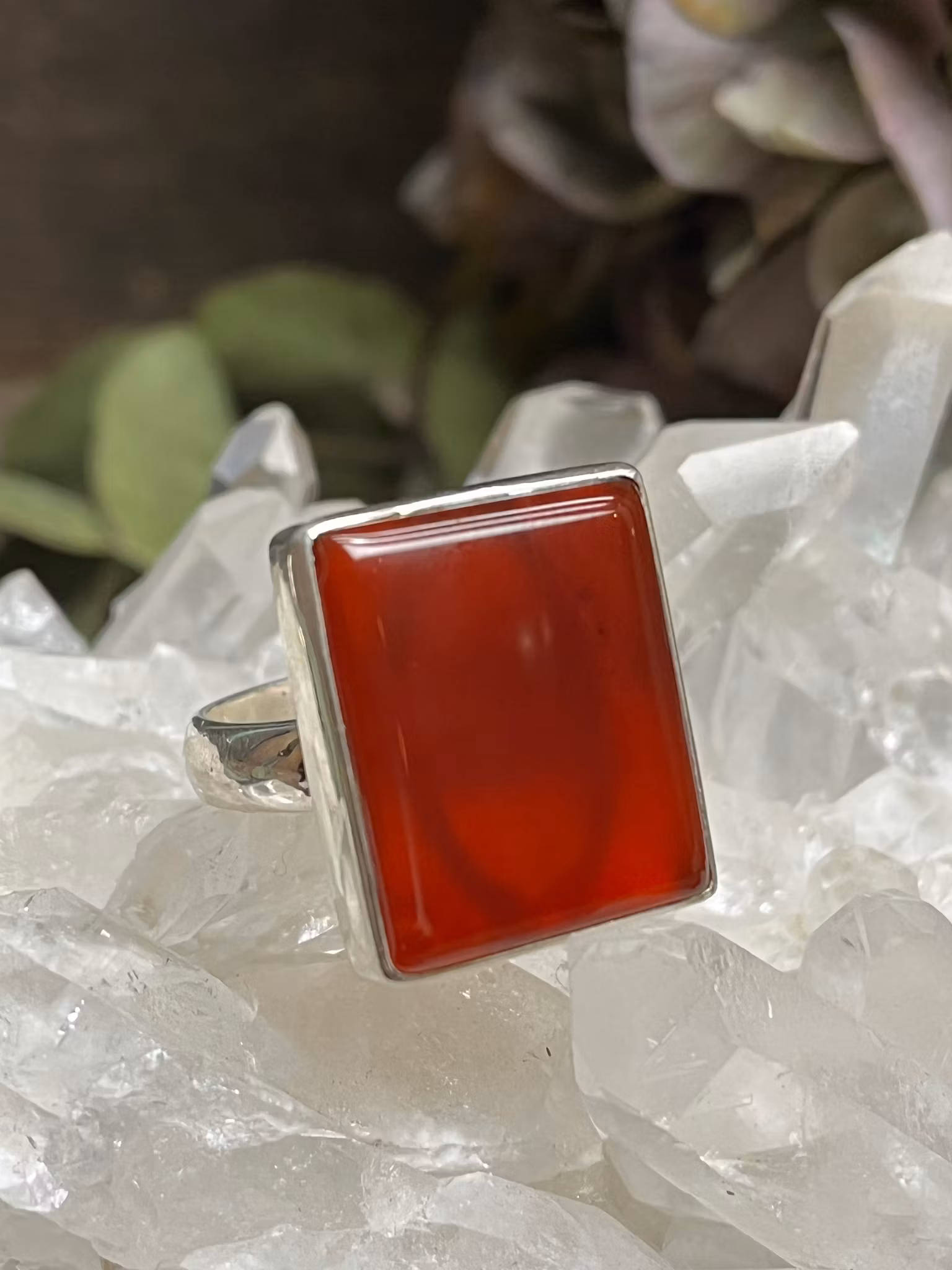 Karneol är en lugnande sten som för in ärlighet och acceptans in i livet. Det är en kraftfull sten för sakral chakrat. Den förstärker din personliga kraft, att bära karneol förstärker din kraft, vitalitet och vilja. Hjälper dig nå högre mål och drömmar.