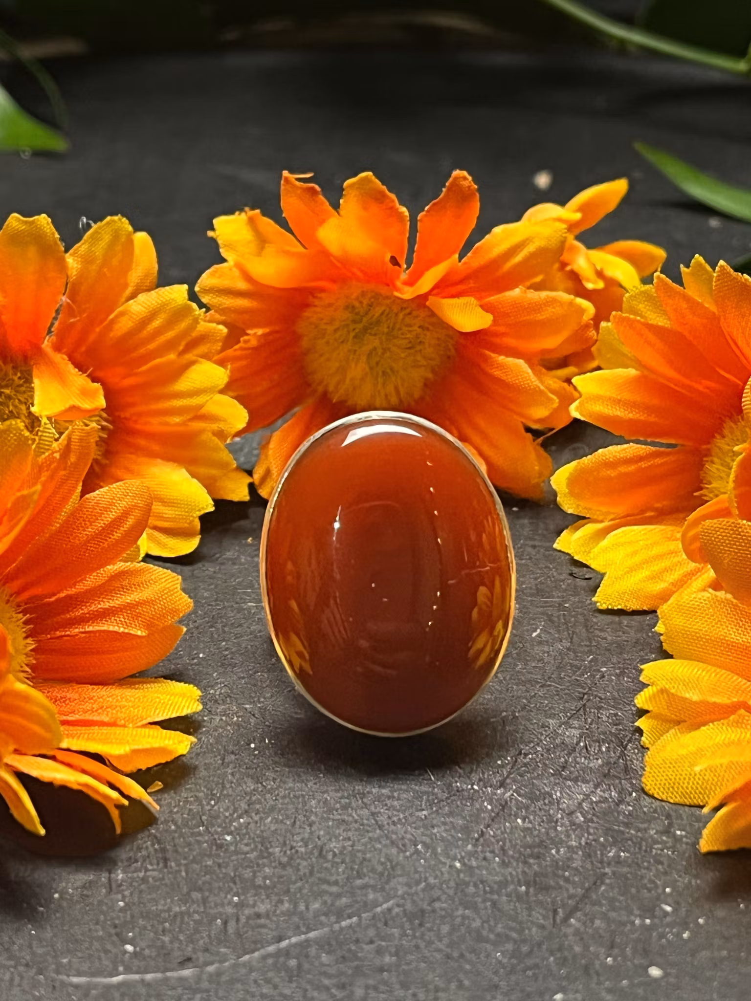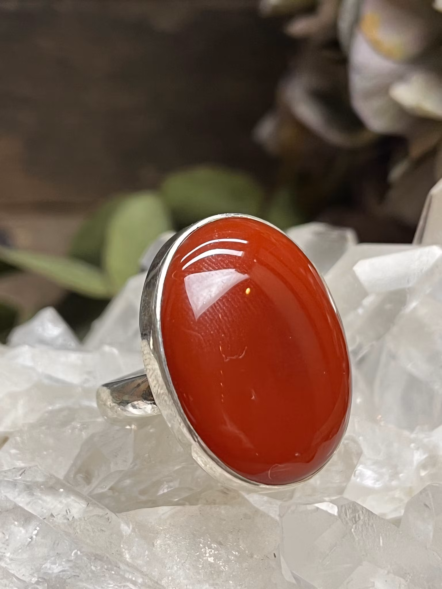 Karneol är en lugnande sten som för in ärlighet och acceptans in i livet. Det är en kraftfull sten för sakral chakrat. Den förstärker din personliga kraft, att bära karneol förstärker din kraft, vitalitet och vilja. Hjälper dig nå högre mål och drömmar.