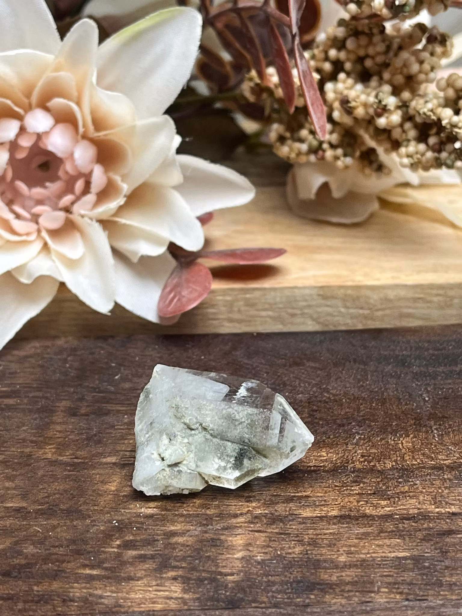 •Egenskaper: Kloritkvarts är en vacker kristall som kombinerar den klara energi från kvarts med den gröna, helande energin från kloriten. Den gröna färgen representerar främst läkning och tillväxt, och Kloritkvarts används ofta för att främja både fysisk och emotionell läkning. Den anses vara en av de mest kraftfulla kristallerna för att rensa och rena energifältet, både på individnivå och på omgivningens nivå. Kloritkvarts hjälper till att eliminera negativ energi och blockeringar, och kan bidra till att öka känsligheten för energier i sin omgivning. Den är också bra för att öppna upp hjärtchakrat och underlätta andlig medvetenhet. Kloritkvarts stärker livskraften och främjar självläkning, vilket gör den till en värdefull sten för alla som arbetar med energimedicin eller healing.