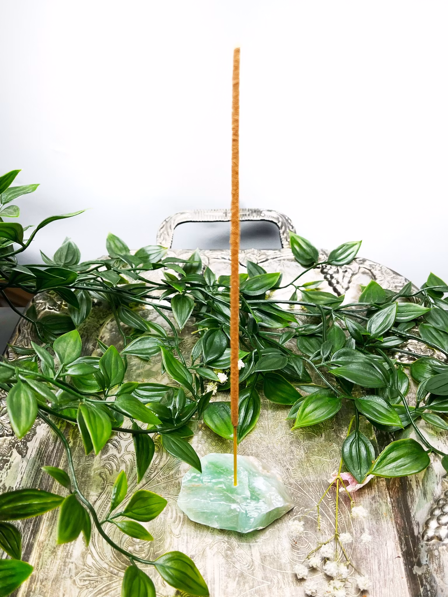 Rå grön kalcit perfekt som rökelsehållare med hål i mitten av stenen.