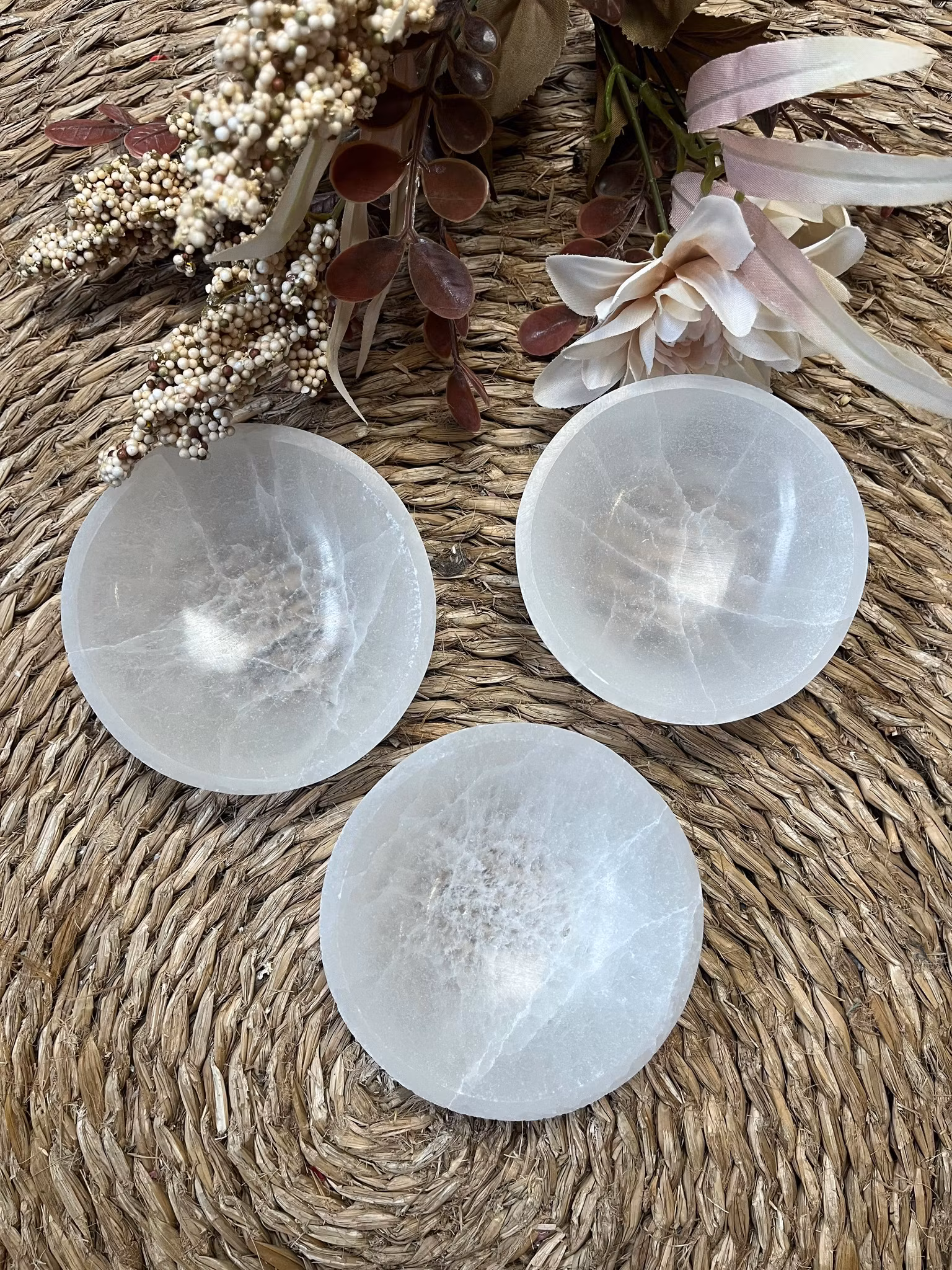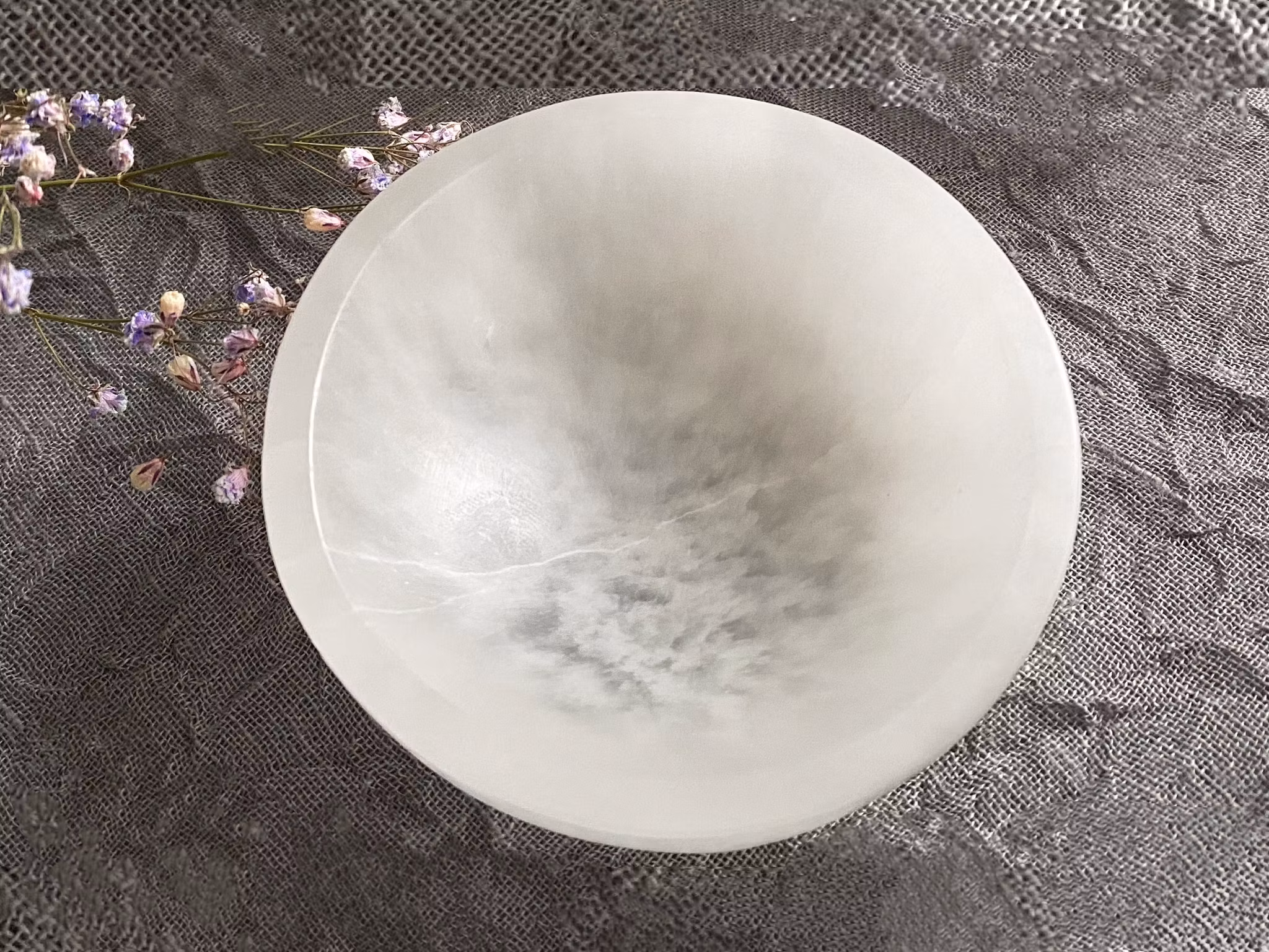 Selenit är överlag en känslig kristall. Därför bör du inte förvara råa stenar i denna skål, som annars enkelt kan repa din skål. Förvara hellre trumlade stenar eller smycken utan skarpa kanter i den.
