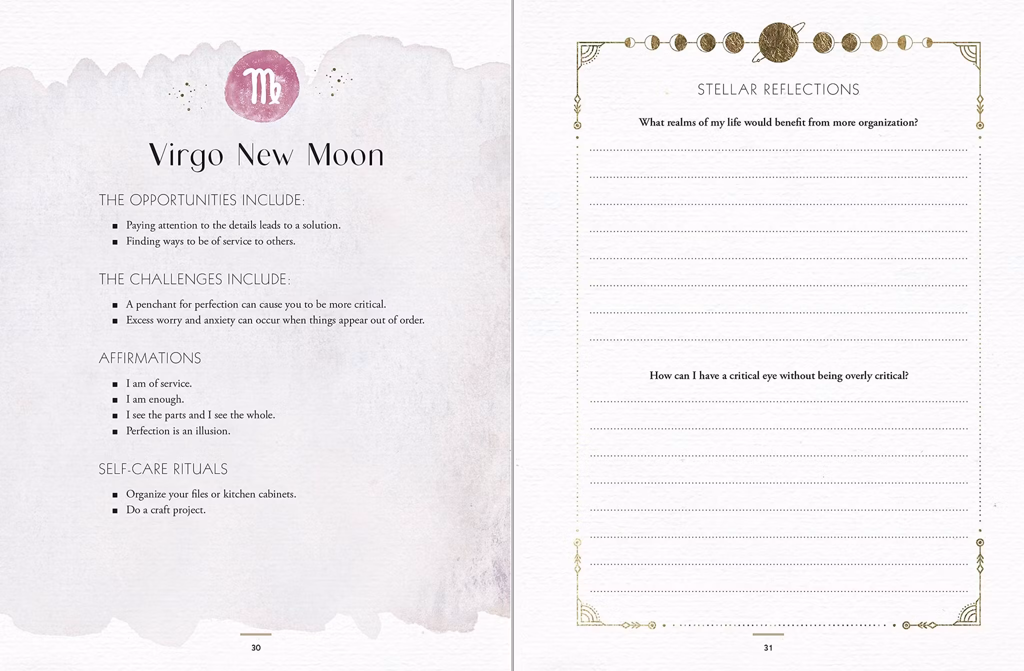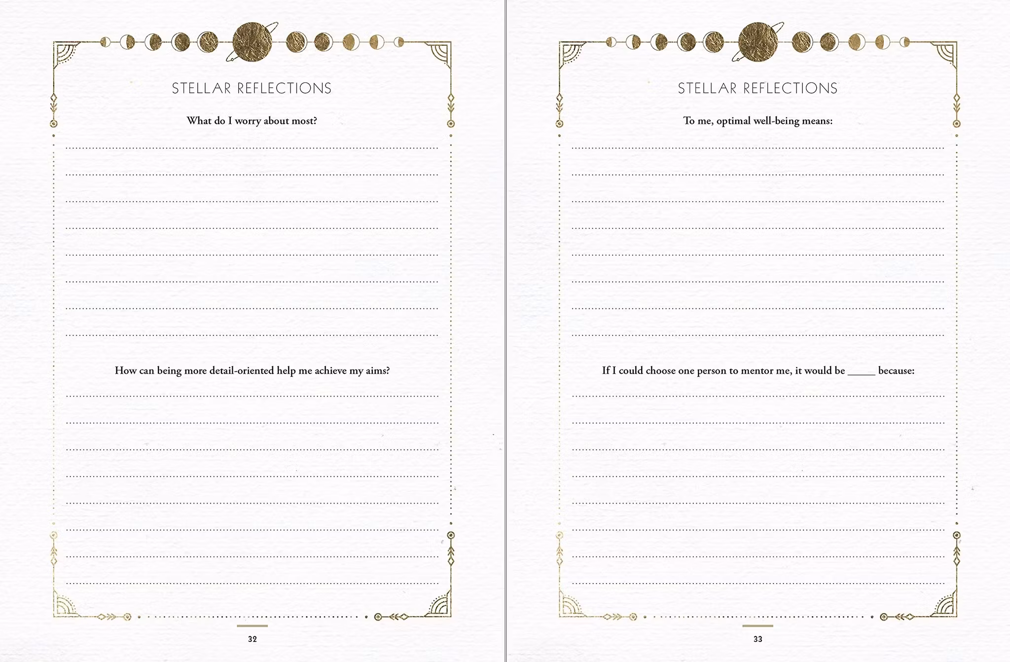 The journal will help you navigate the year, offering you ways to sequence your self-care routine and access informative insights that will uplevel your well-being. As you read the advice in each section, use the writing prompts to reflect on what nurtures and inspires you, tapping into the cosmic intelligence available. Doing so will help you bring the healing wisdom of the planets down to earth so you can optimize your health and well-being.
