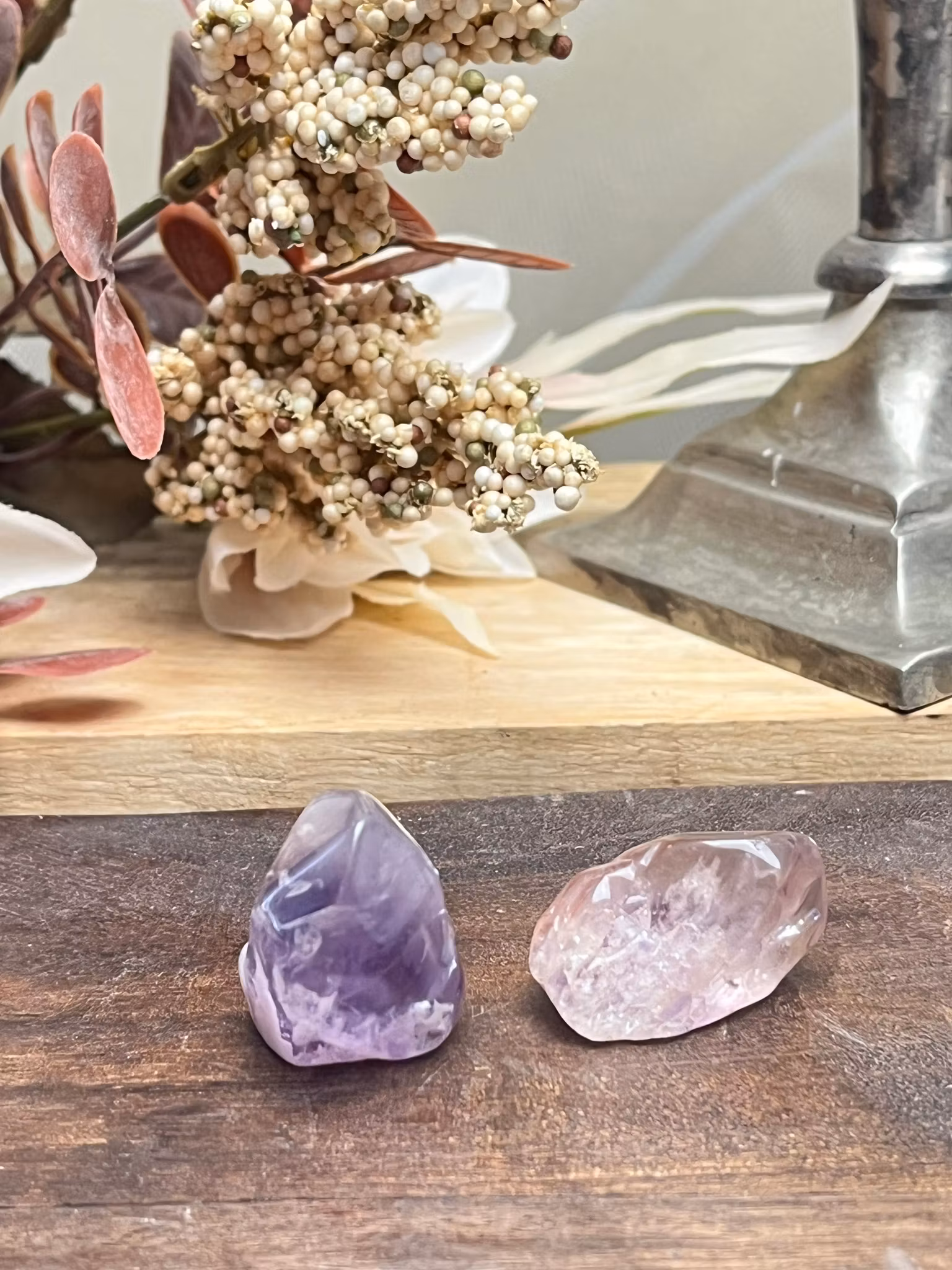 •Egenskaper: Rosa Ametist Fantom är en unik och kraftfull variant av ametist, känd för sina vackra rosa och lila nyanser. Fantomkristaller kännetecknas av “skuggiga” eller “lagrade” mönster inom kristallen, vilket ger dem en djup andlig symbolik. Rosa Ametist Fantom är särskilt känd för att hjälpa till att föra fram andliga insikter och för att främja inre läkande och andlig upplysning. Den rosa färgen är kopplad till kärlek och medkänsla, medan ametistens energi stärker intuition, meditation och kontakt med högre medvetande. Kombinationen av dessa egenskaper gör Rosa Ametist Fantom till en mäktig kristall för dem som söker andlig vägledning, helande och inre balans. Fantomstrukturerna representerar en process av utveckling och självläkning, där varje lager symboliserar ett steg i din personliga och andliga tillväxt.