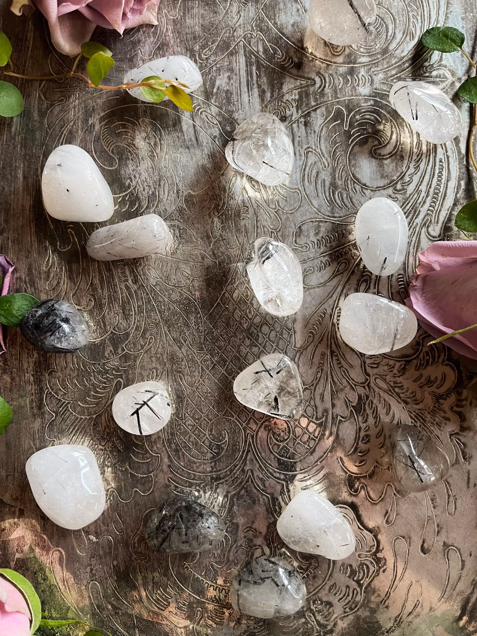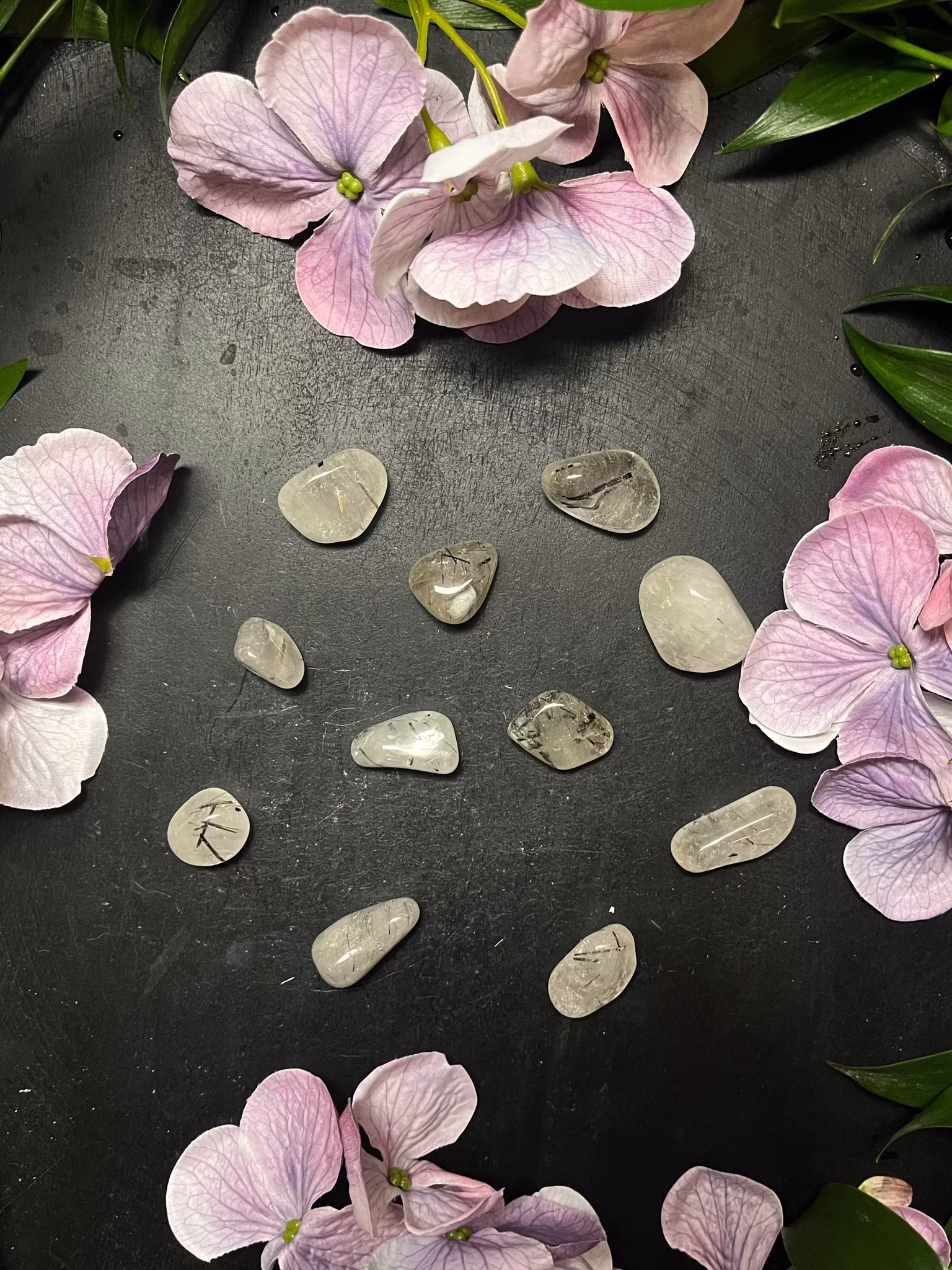 denna sten består av svart turmalin som har en kraftig grundande/jordande energi och den ljusa bergkristallen som har en hög och lätt energi tillsammans bildar de en sten som har båda två i sig och kan användas för båda egenskaperna.