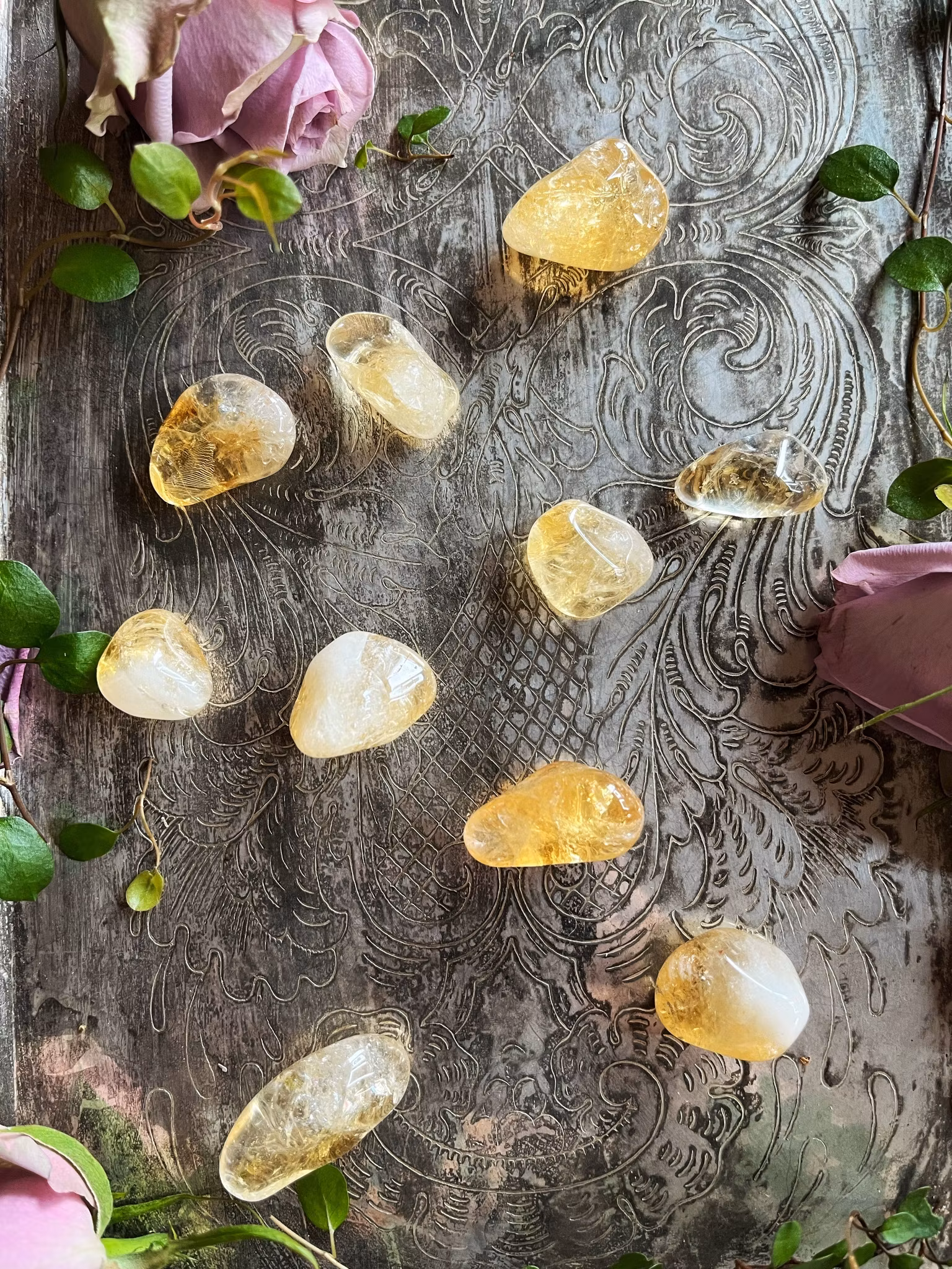 Citrin (oavsett vilken sort) har en härlig vibration den smittar av sig av sin ljusa glädjefulla energi. Dämpar alla tillstånd av oro, och sägs vara bra som examen sten. Genom arbete med Citrin kan man lättare överkomma depressioner, nedstämdhet och ilska. Citrin kan aktivera ens fantasi och ge klarare visioner. Citrin arbetar på solar plexus chakra.
