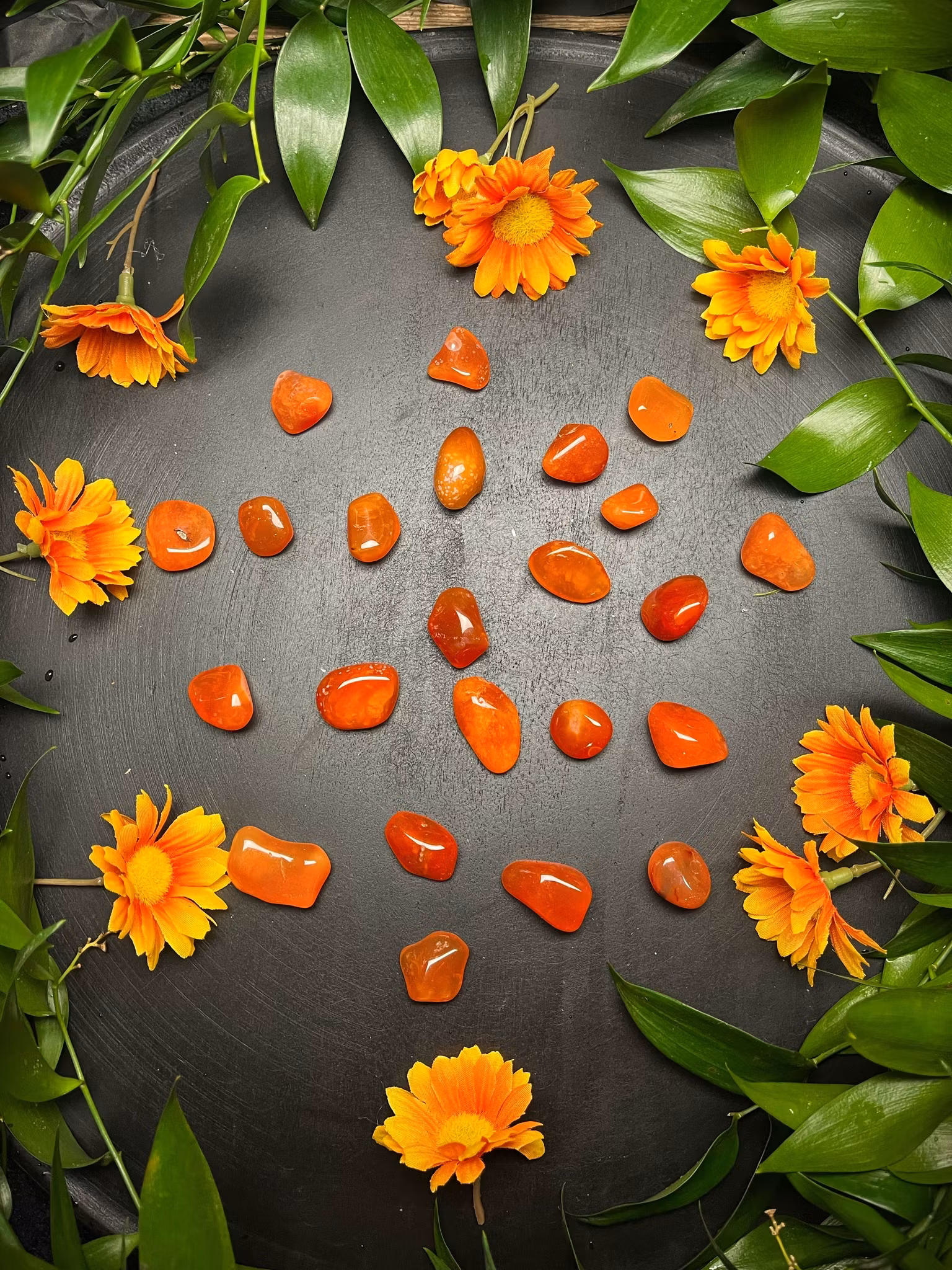 Karneol är en lugnande sten som för in ärlighet och acceptans in i livet. Det är en kraftfull sten för sakral chakrat. Den förstärker din personliga kraft, att bära karneol förstärker din kraft, vitalitet och vilja. Hjälper dig nå högre mål och drömmar.